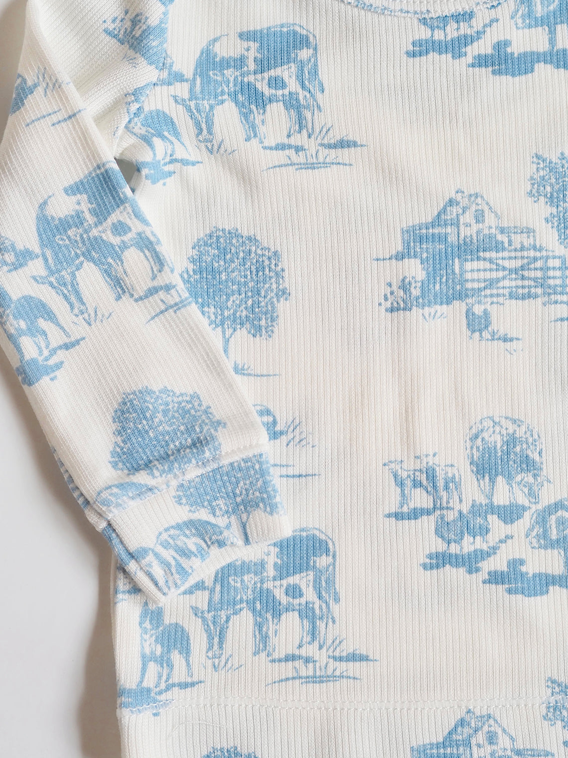 Get your little one ready for the sweetest dreams in our Pink Farm Toile Loungewear Set! Made with soft, breathable ribbed modal fabric, this set is perfect for pyjamas, lounging, and cozy nights of restful sleep. Whether it’s bedtime or lazy mornings, your baby will love the softness and comfort of these PJs.