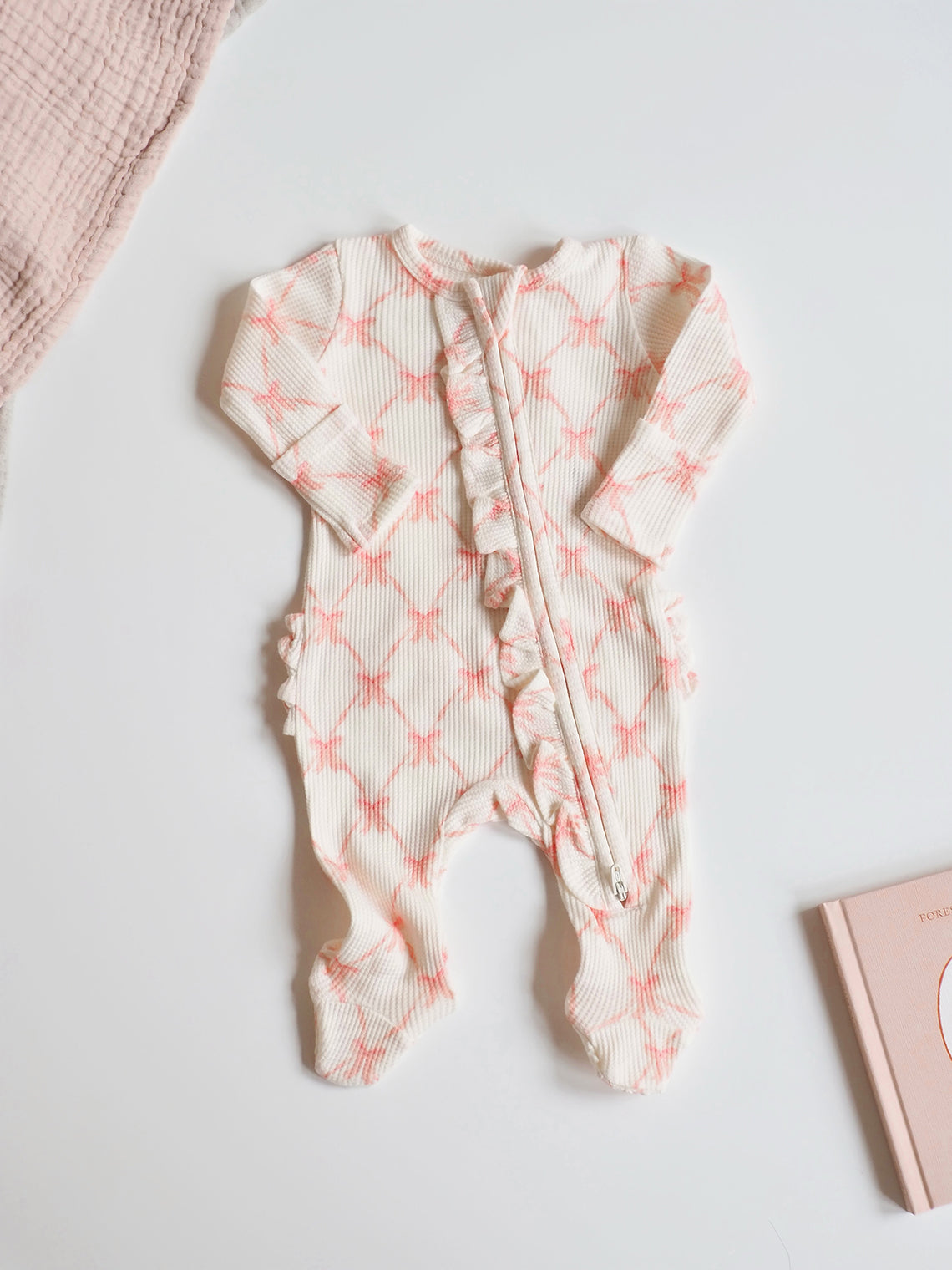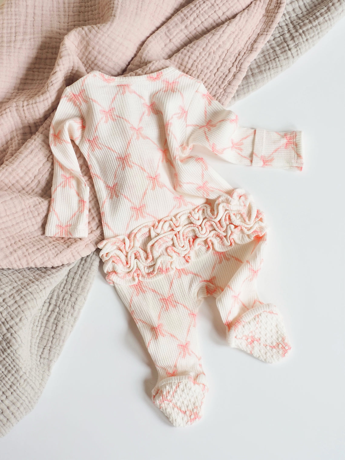 Ribbon Bow Ruffle Zipper Footie - The Cross Decor & Design
