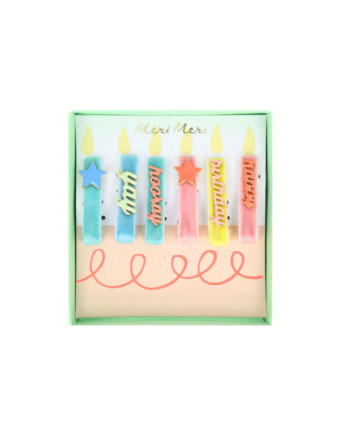 It's time to celebrate! Let everyone know it's your special day by wearing these colourful candle hair clips, featuring luxurious velvet ribbons and enamel details. Wear one, two or all, to mix and match with your party outfit. A wonderful gift you can use every year to instantly look and feel birthday brilliant.