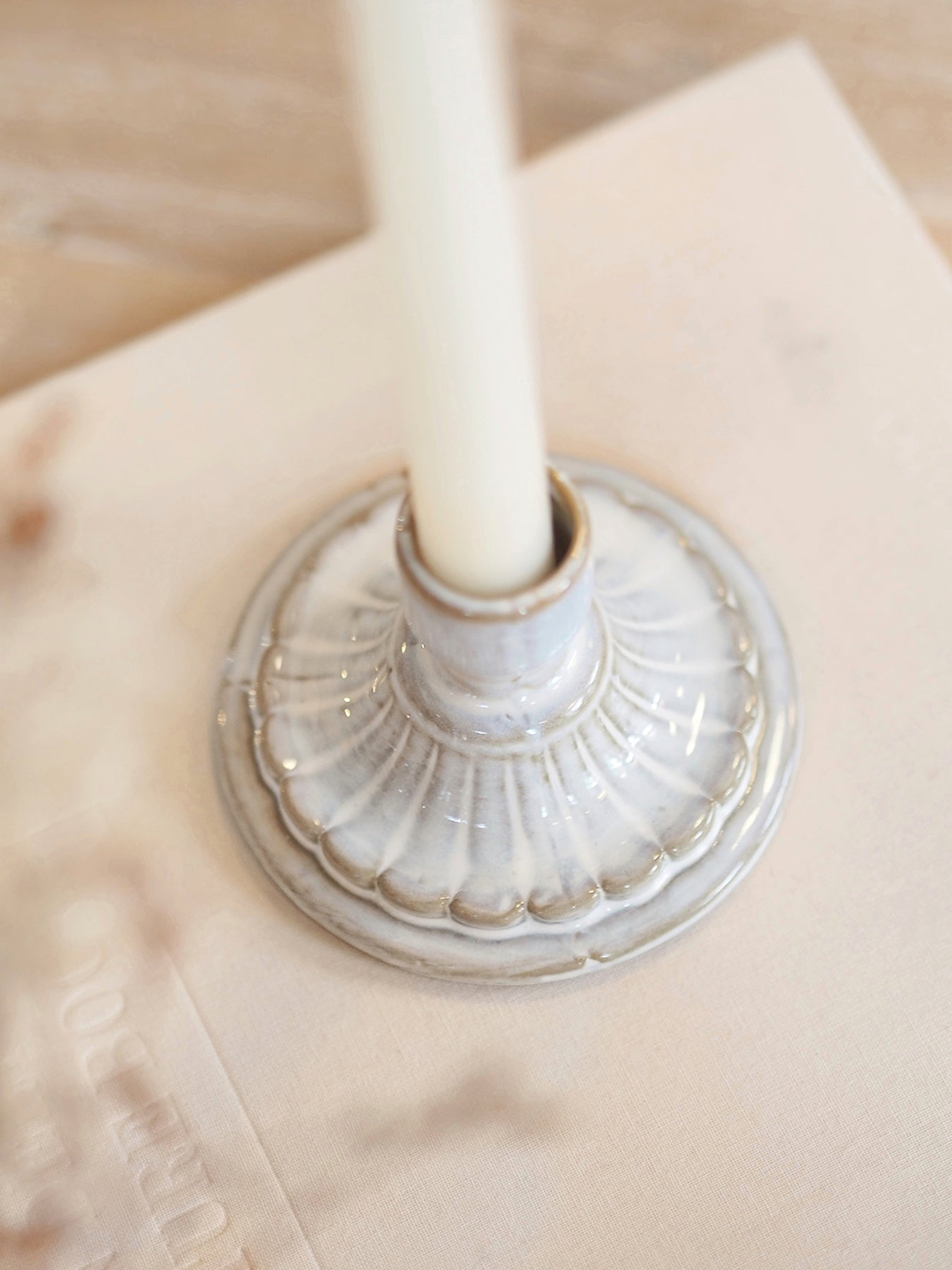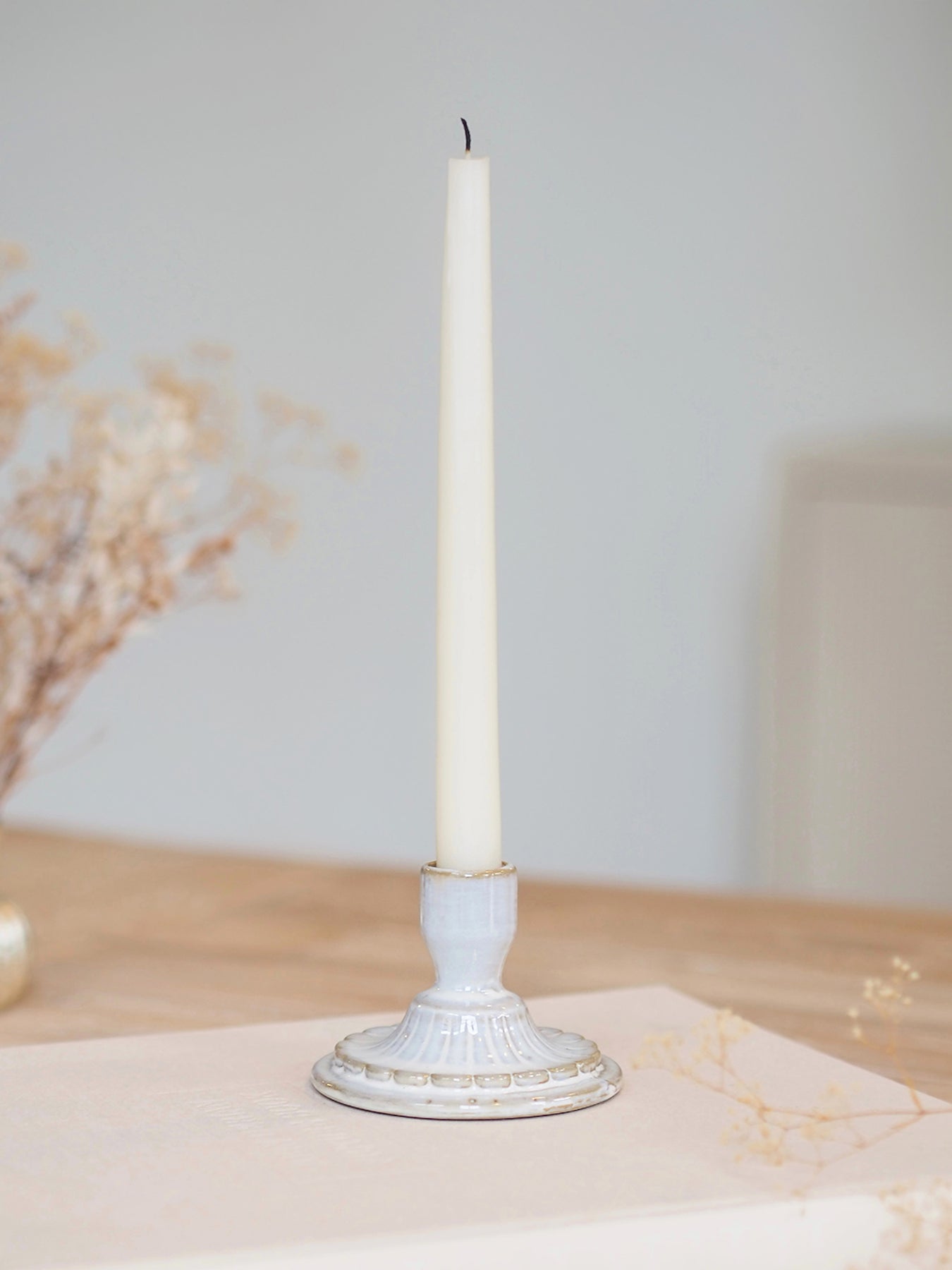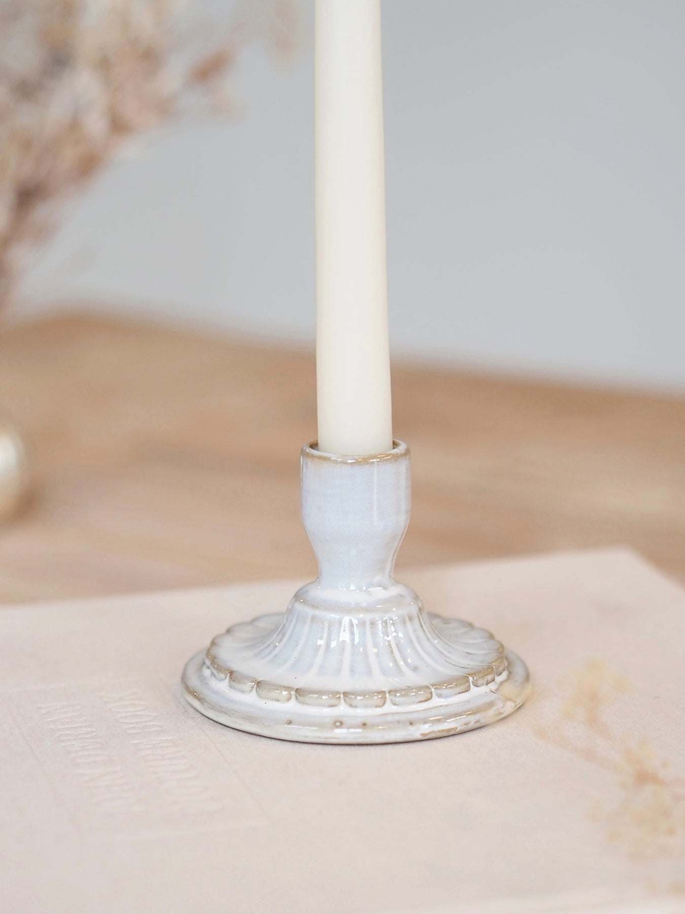 Add a touch of elegance with our Jeanne Taper Holder. Made of high-quality porcelain, this candle holder features exquisite embossed designs that will elevate any room. Perfect for candle-lit dinners or as a statement piece on a mantel.