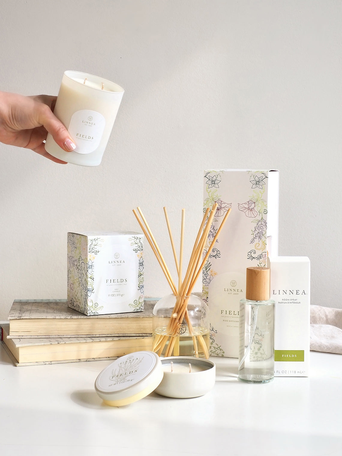 Fields is an ode to sunlit meadows and the gentle stillness of spring. Crafted to softly scent the air, notes of cut grass, lavender, and warm hay create an airy, nostalgic ambiance that feels like a breeze through an open window. Earthy and calming, it captures the quiet freedom of the season.
