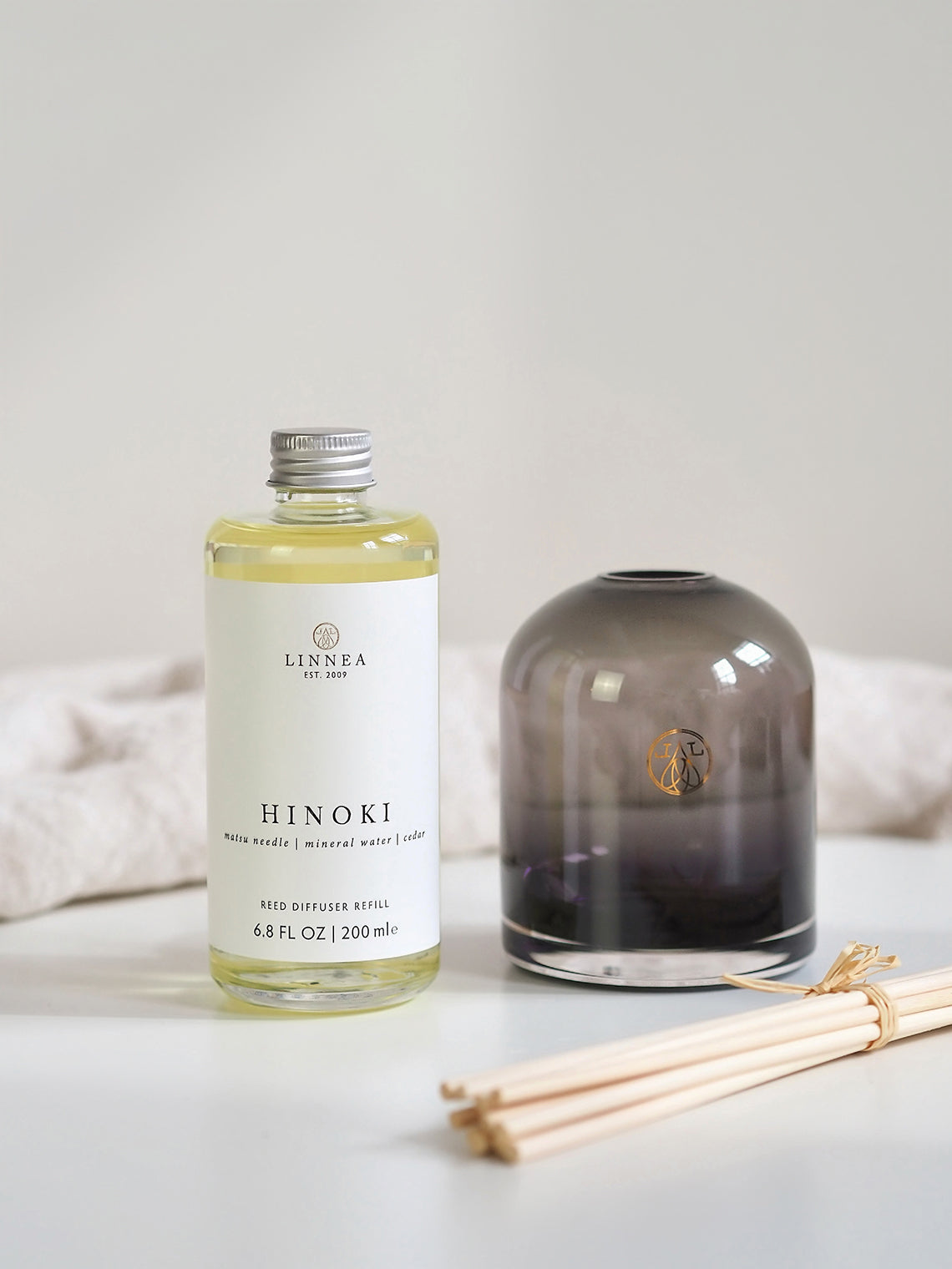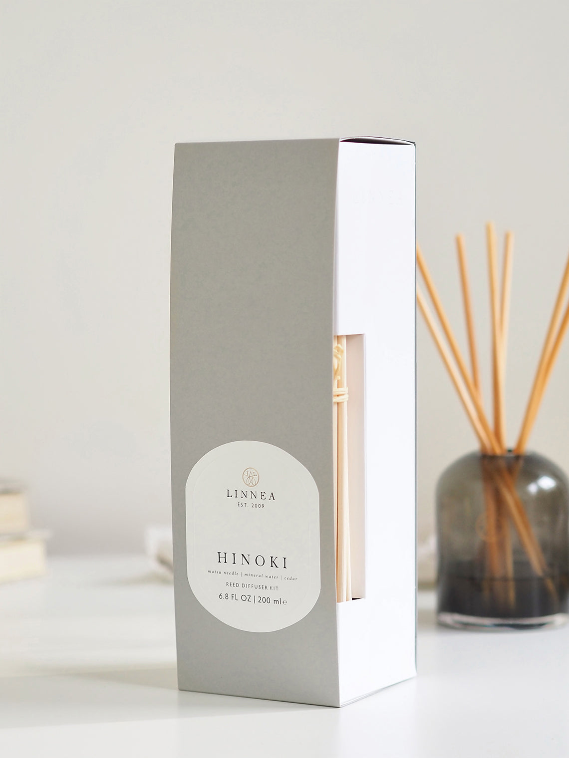 Hinoki is inspired by ancient cleansing rituals and the serene beauty of Japanese Onsen culture. Nestled among healing waters and stillness, its scent blends Matsu Needle, Mineral Water, and Cedar, evoking a calming, elemental atmosphere. Hand-poured in a light-diffusing gray glass vessel, it features two cotton wicks for an enhanced fragrance experience.