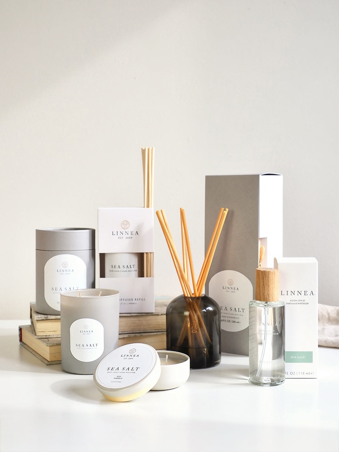 Sea Salt captures the crisp, refreshing essence of the coast. Notes of fresh citrus, ocean mist, and kelp mingle to evoke tranquil seaside air, bringing a bright, airy, and restorative ambiance to any space.