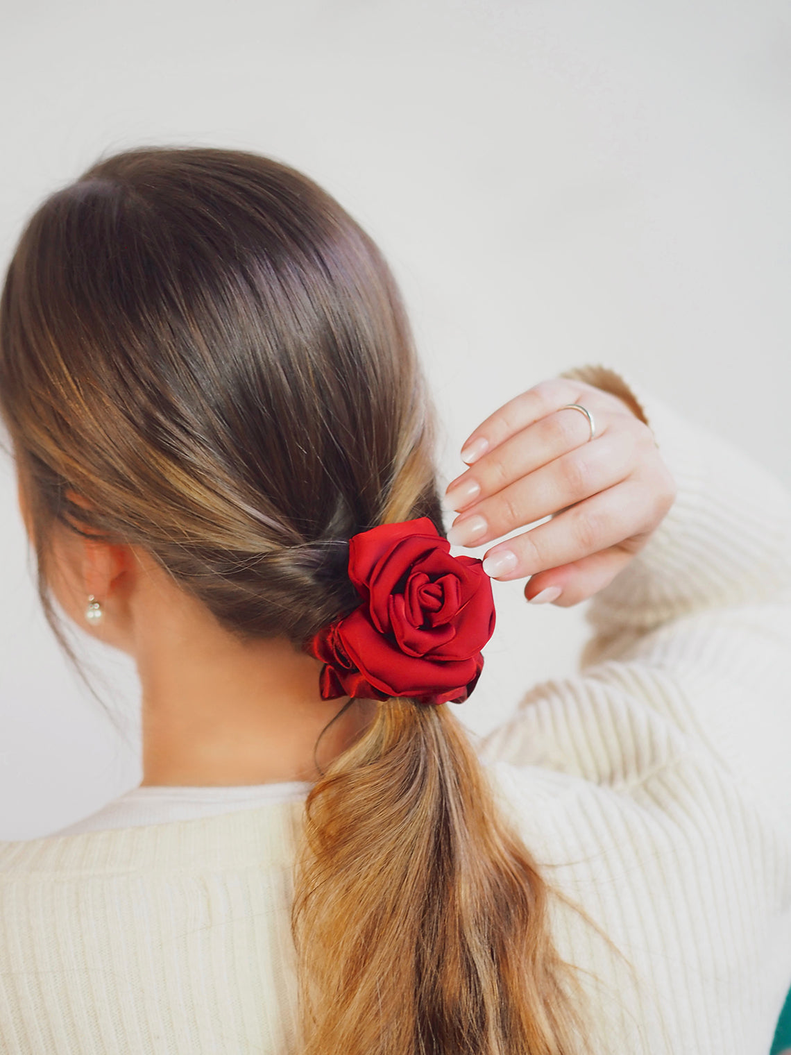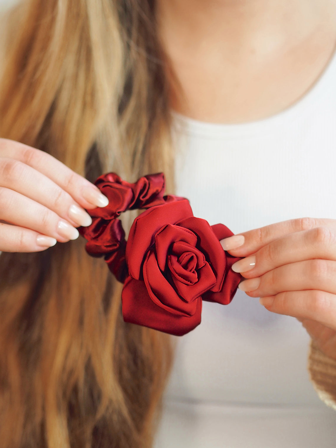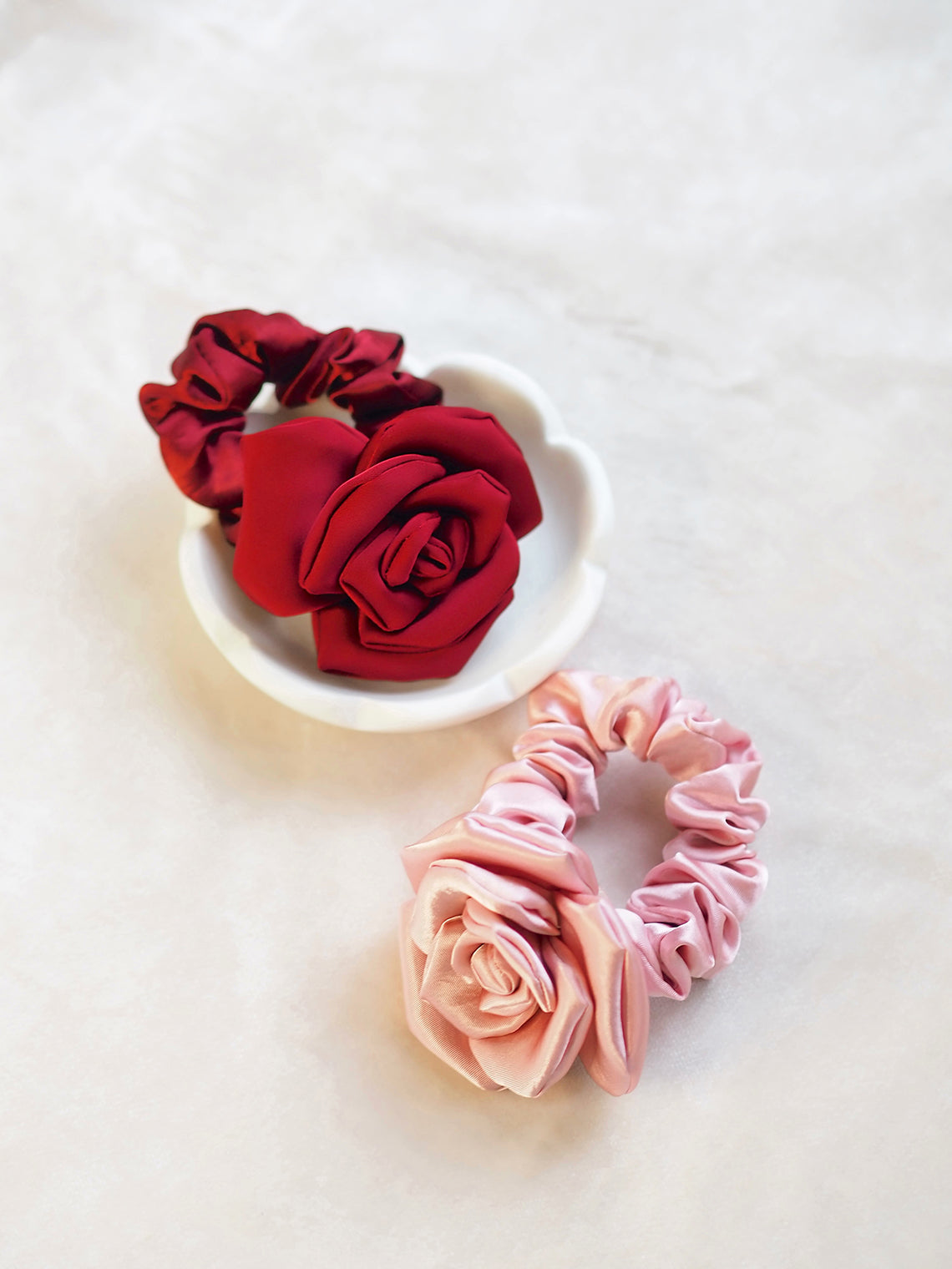 Lush satin scrunchies adorned with delicate rose blooms, made to feel like a love letter in your hair. Soft, dreamy, and timeless—perfect for romantic ponytails, graceful buns, or a pretty wrist accent.