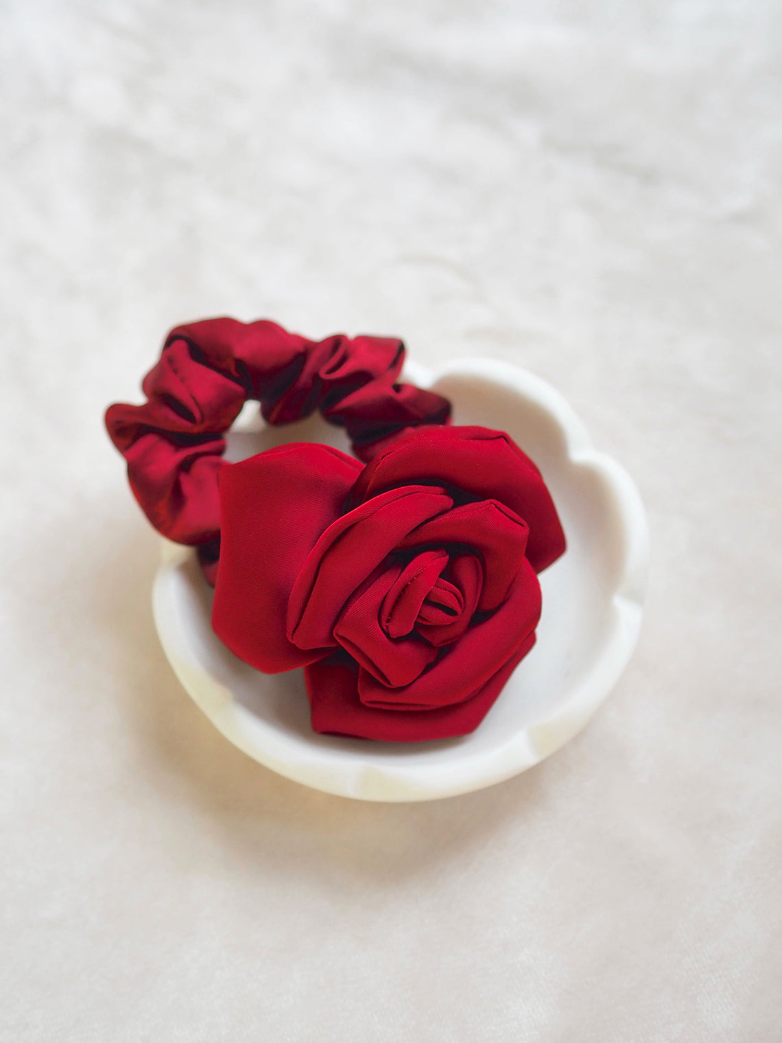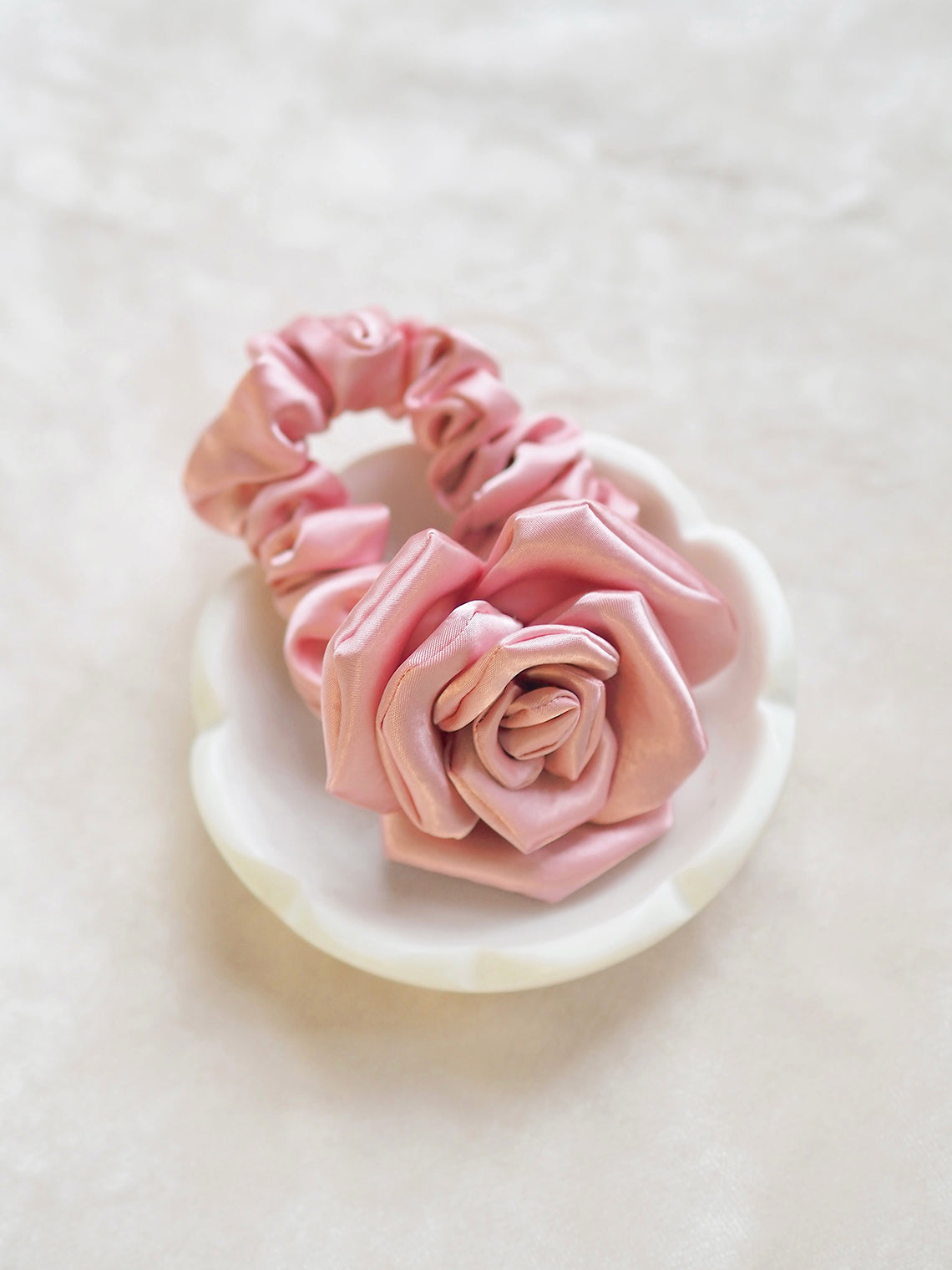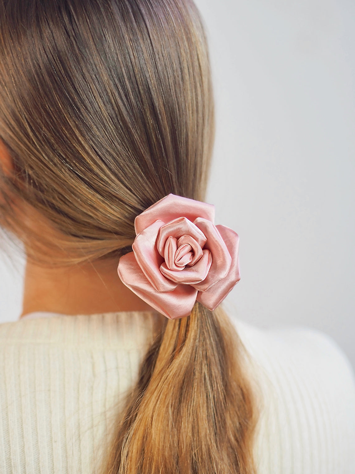 Lush satin scrunchies adorned with delicate rose blooms, made to feel like a love letter in your hair. Soft, dreamy, and timeless—perfect for romantic ponytails, graceful buns, or a pretty wrist accent.
