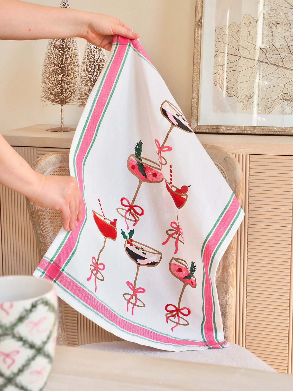 A fun and stylish dish towel inspired by the iconic cocktail tower. The design features colourful cocktail glasses and a festive background. Adds a touch of party flair to any kitchen.