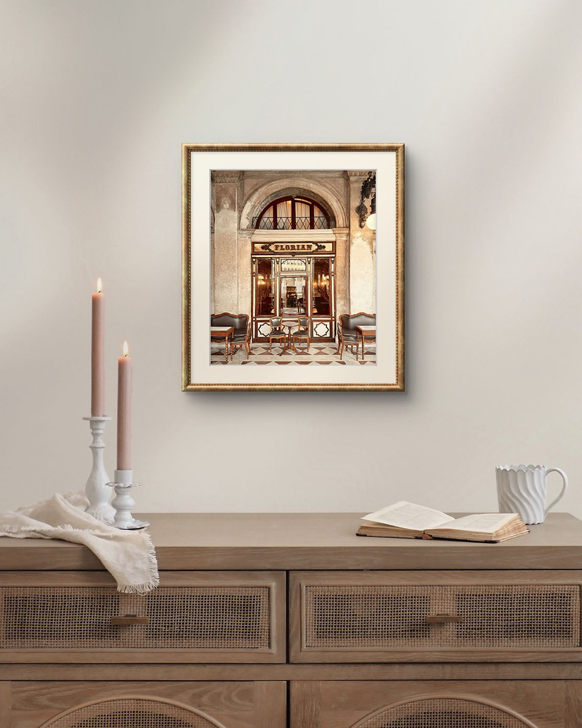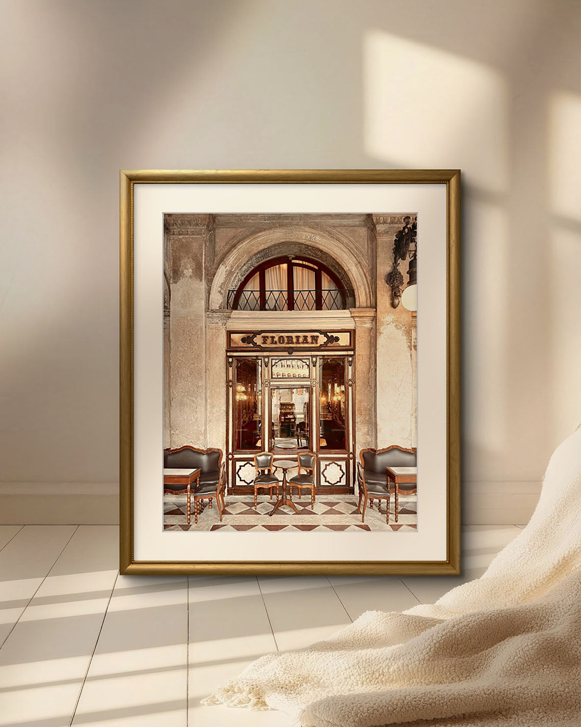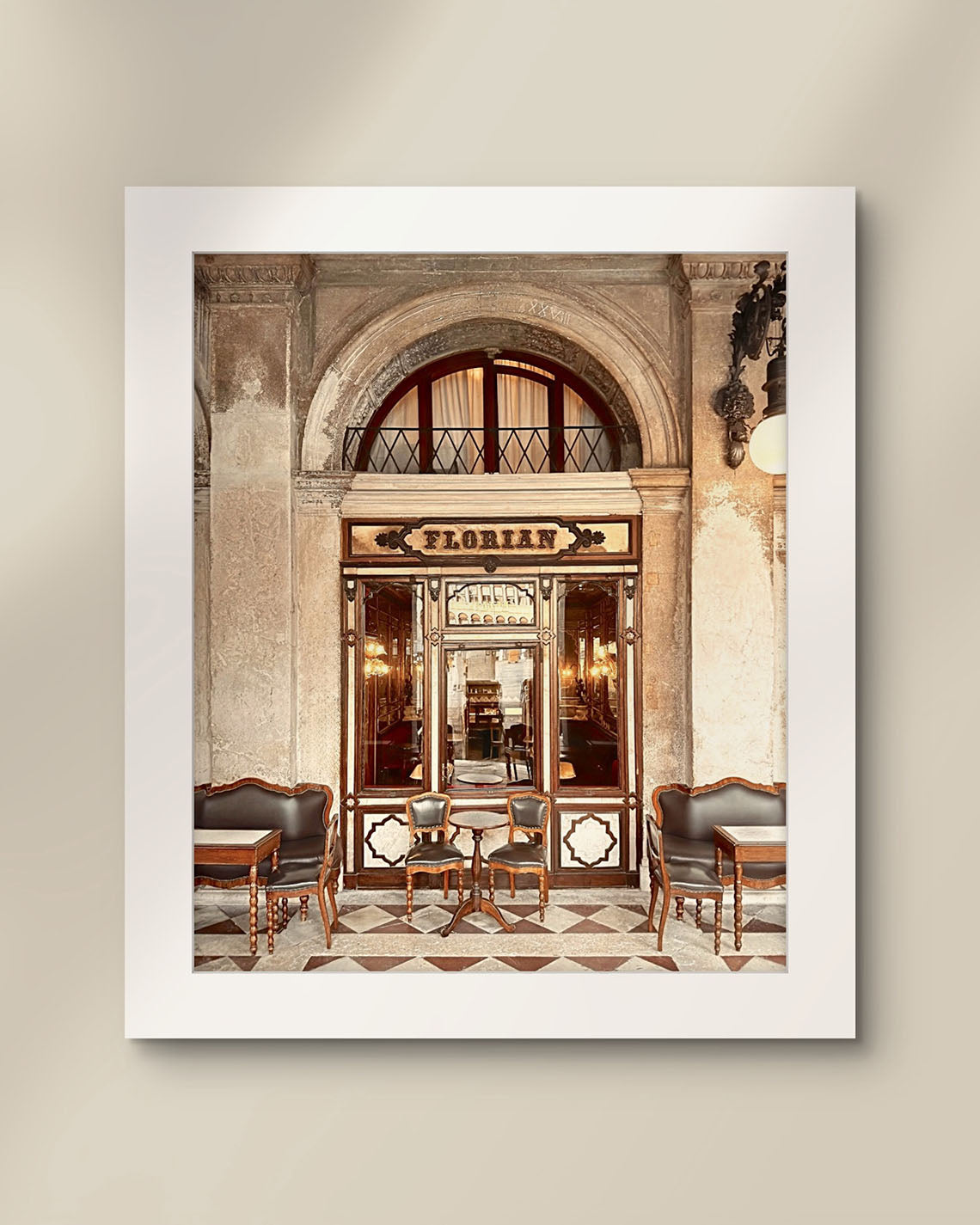 The storied exterior of Caffè Florian stands in quiet elegance. Its historic façade is a witness to centuries of conversation, art, and passage. As the oldest café in Italy, it carries an unmistakable presence - ornate details, polished surfaces, and an atmosphere steeped in history and refinement. Set against the rhythm of Venice, it feels both grand and inviting, a place where time lingers just a little longer.