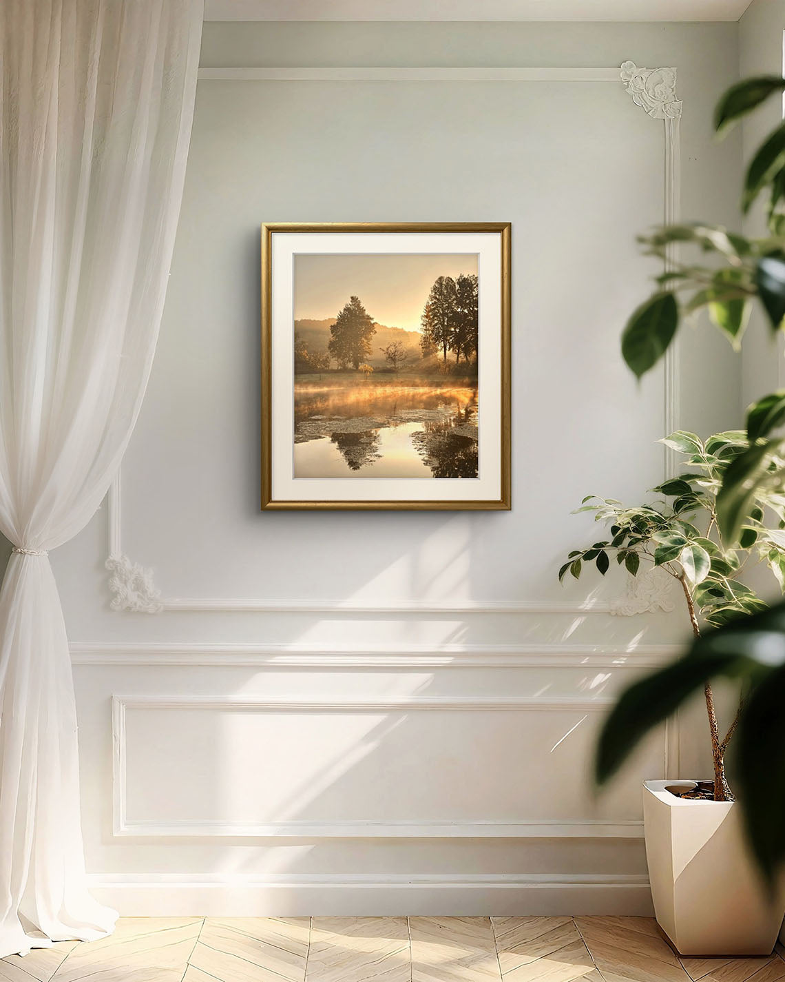 This photograph transports the viewer to the Château’s lakeside at daybreak. It brings with it a sense of renewal, peacefulness, and connection to nature - turning your wall into a window overlooking a morning you can step into again and again.