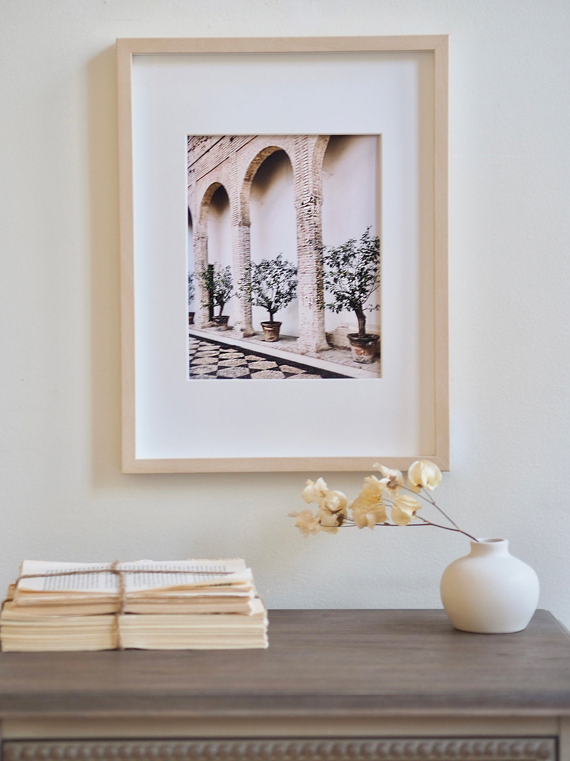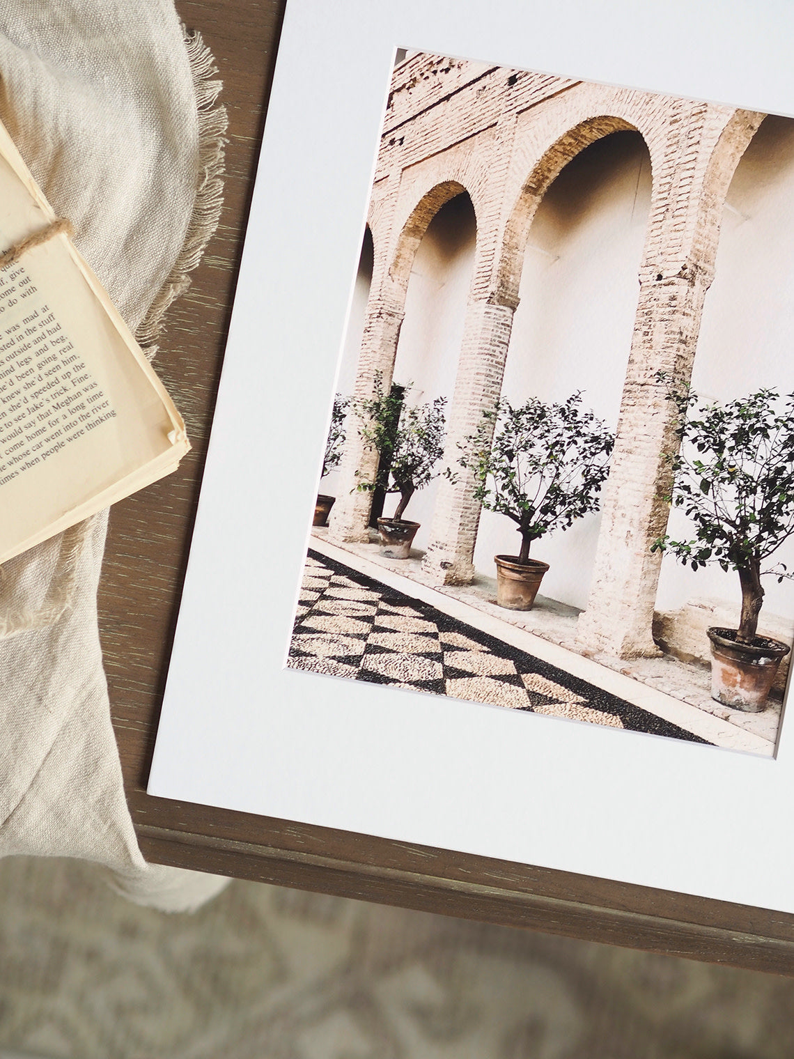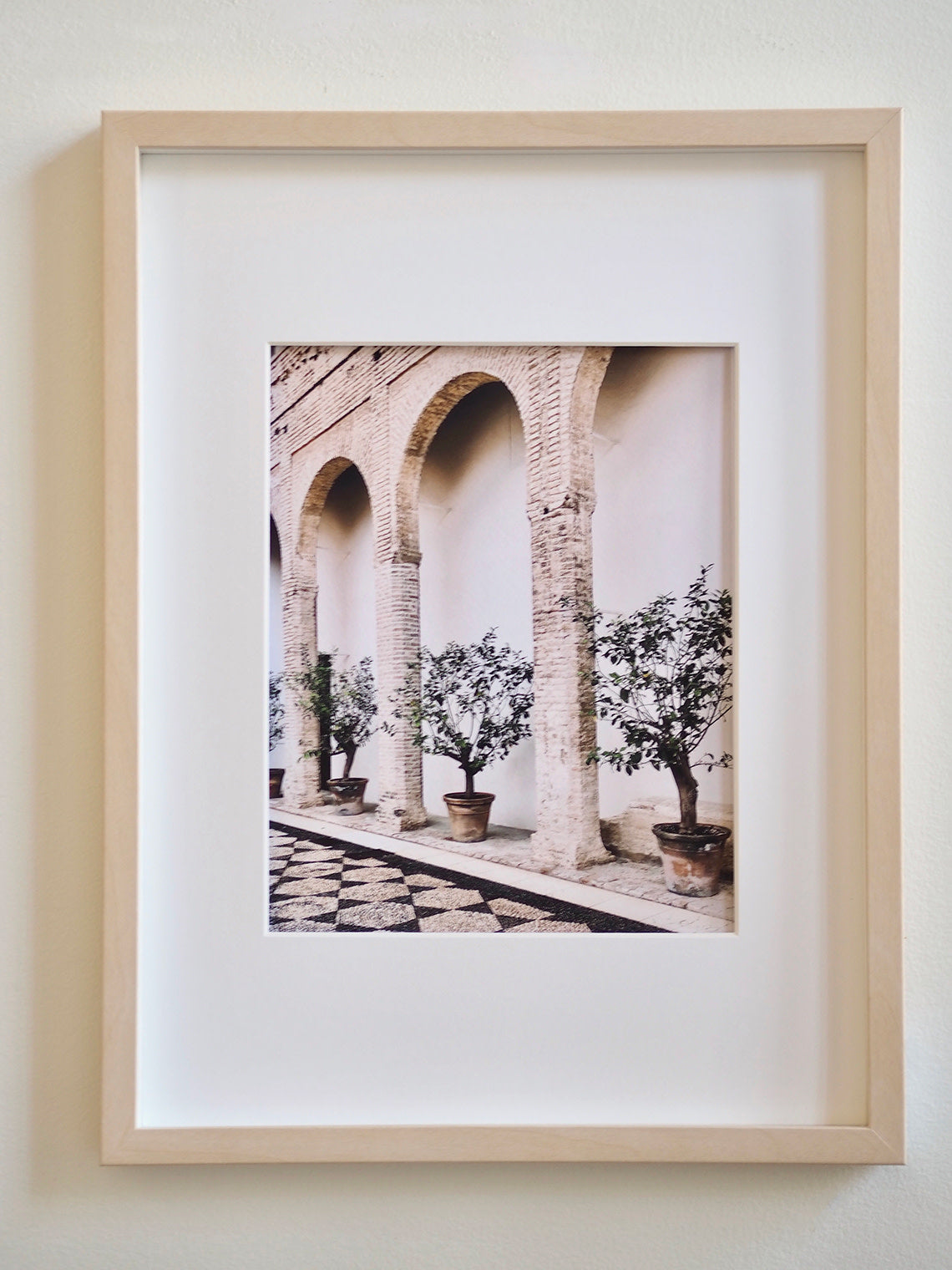 Historic arched structures in Sevilla, Spain - a moment in time captured. The geometric floor patterns, contrasting with the angled and curved archways, create an unlikely graphic dimension, inviting your mind to wander through and unfold the history. Photography by Mister Antonio Art.