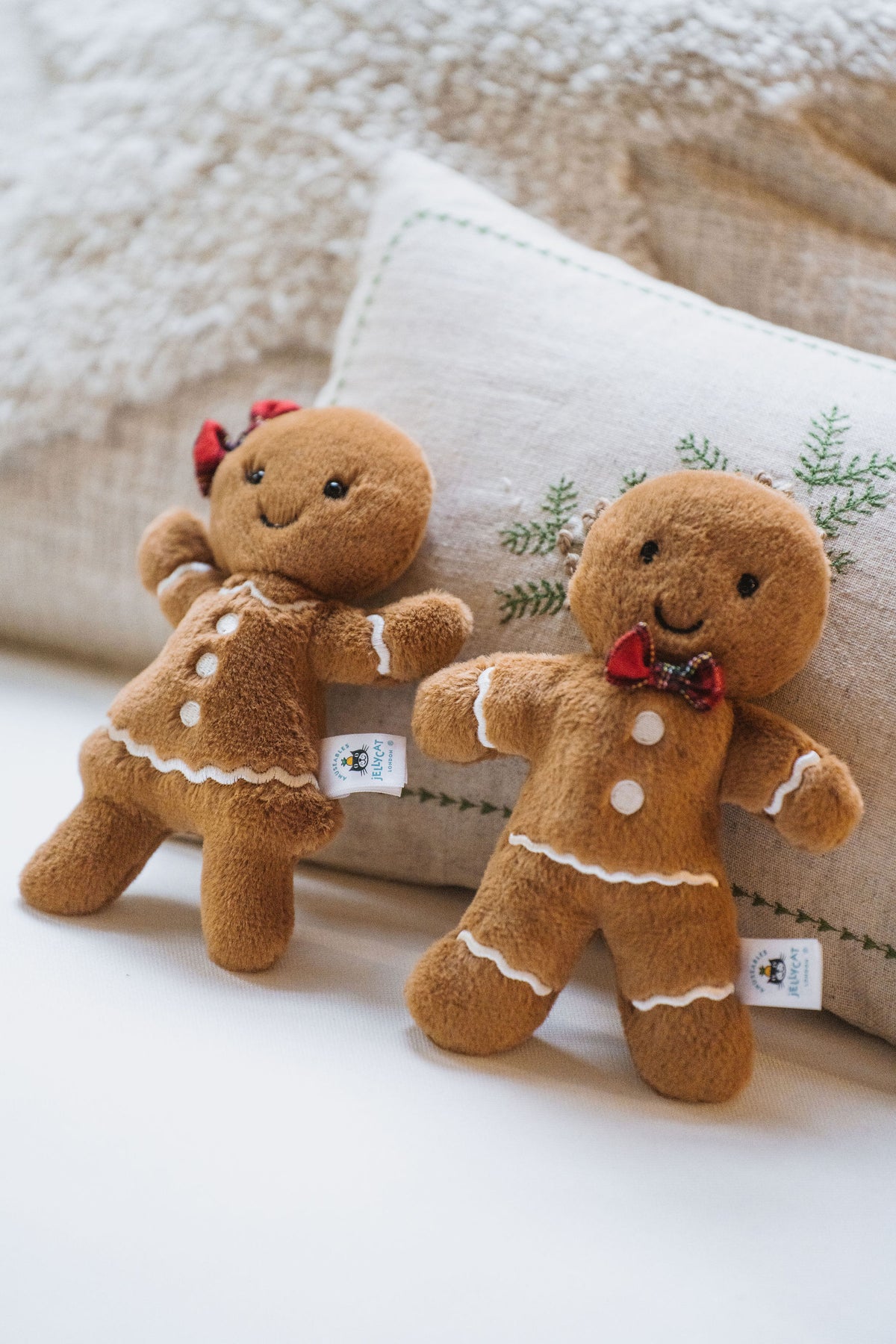 Jolly Gingerbread Fred may have hopped straight out of the tin, but this guy's always looking smart! In soft golden biscuit fur with scalloped stitch icing, embroidered buttons and a red tartan bow, Fred is a forever festive friend!