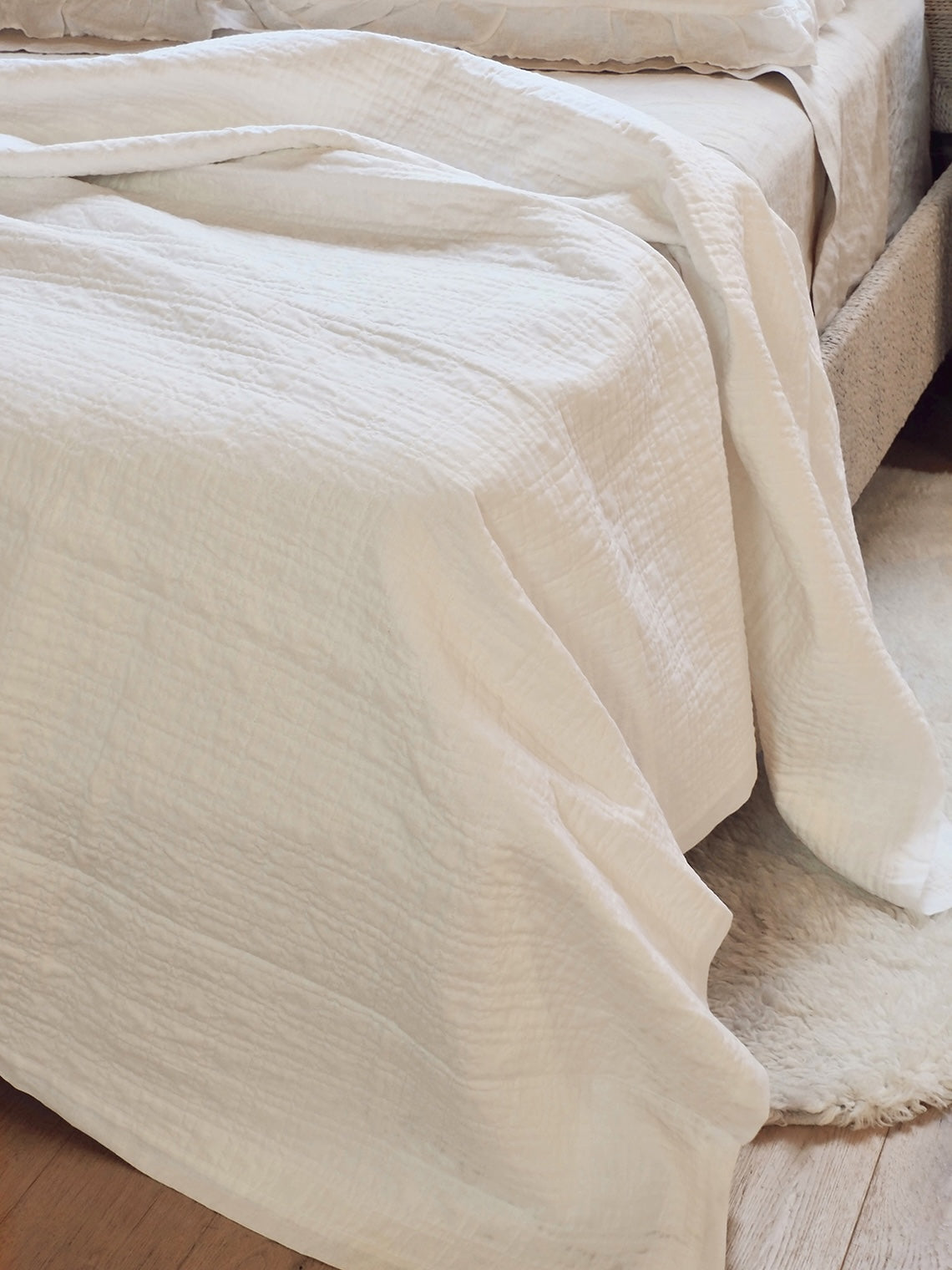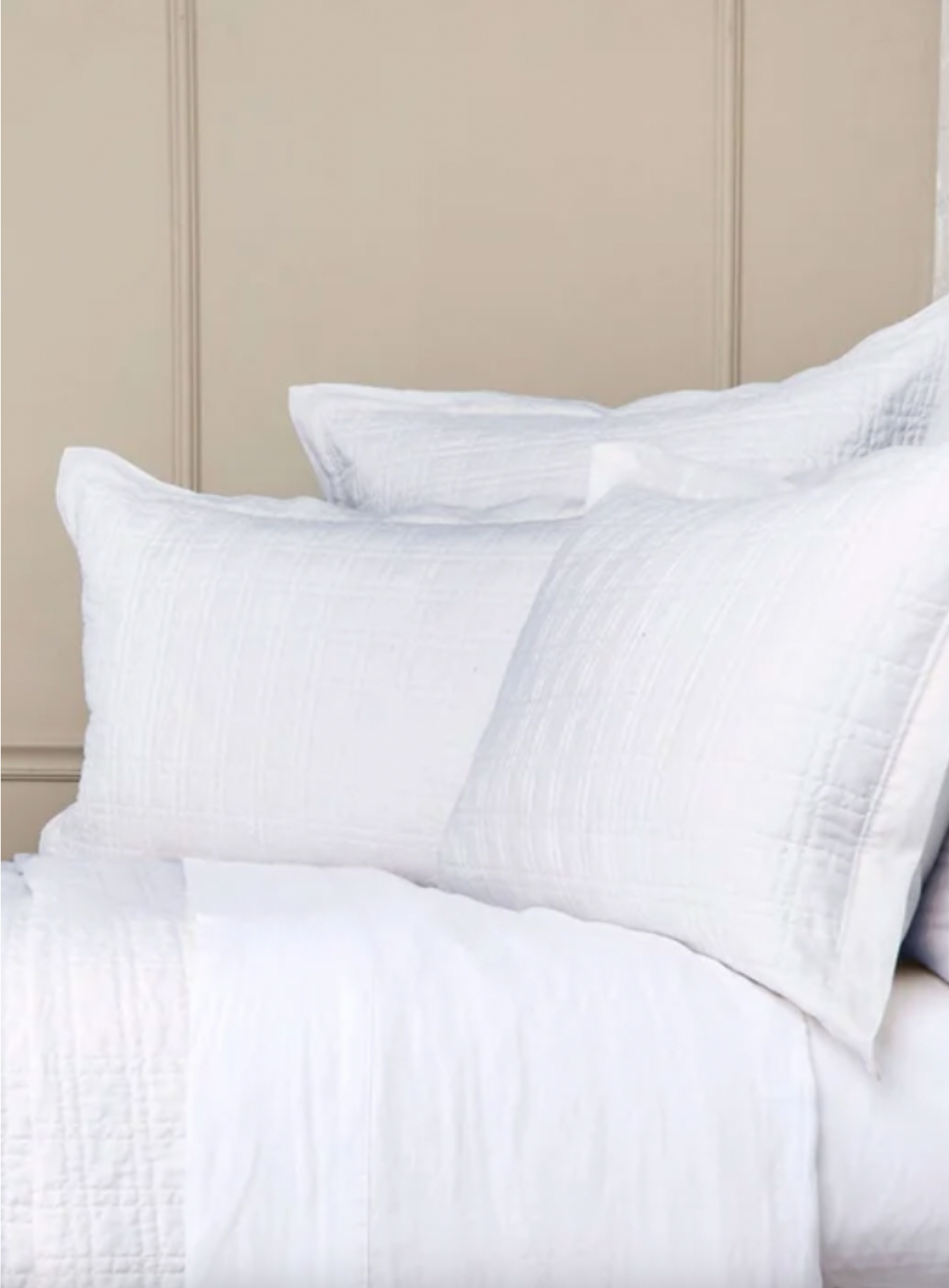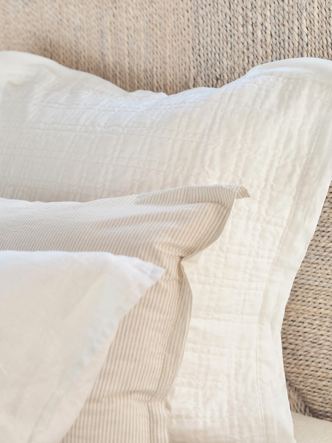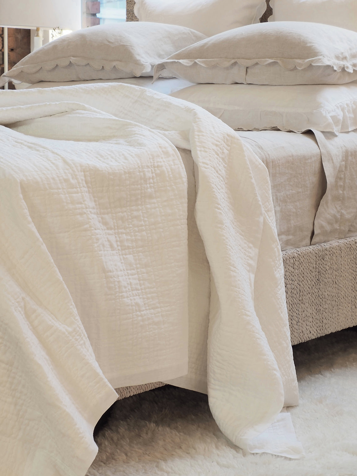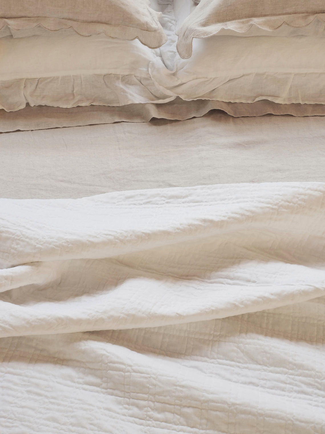 The quilted square pattern on this linen and cotton coverlet offers a refined, textured design that gives your bedding subtle depth and dimension. Its uniform stitches create a clean, structured aesthetic, while the softness of the quilting ensures endless comfortable nights. There’s nothing quite like this quilted square pattern coverlet collection.