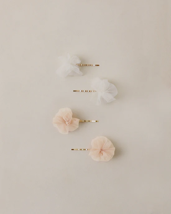 Add a delicate yet playful touch with the Ivory & Pearl Pom Pom Pins Set. So darling!