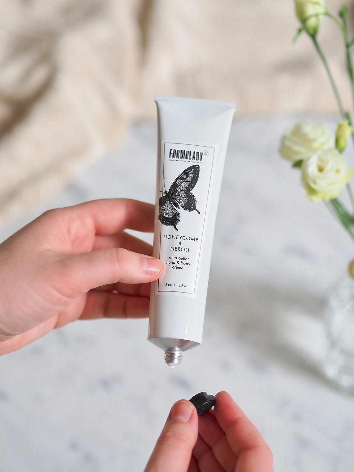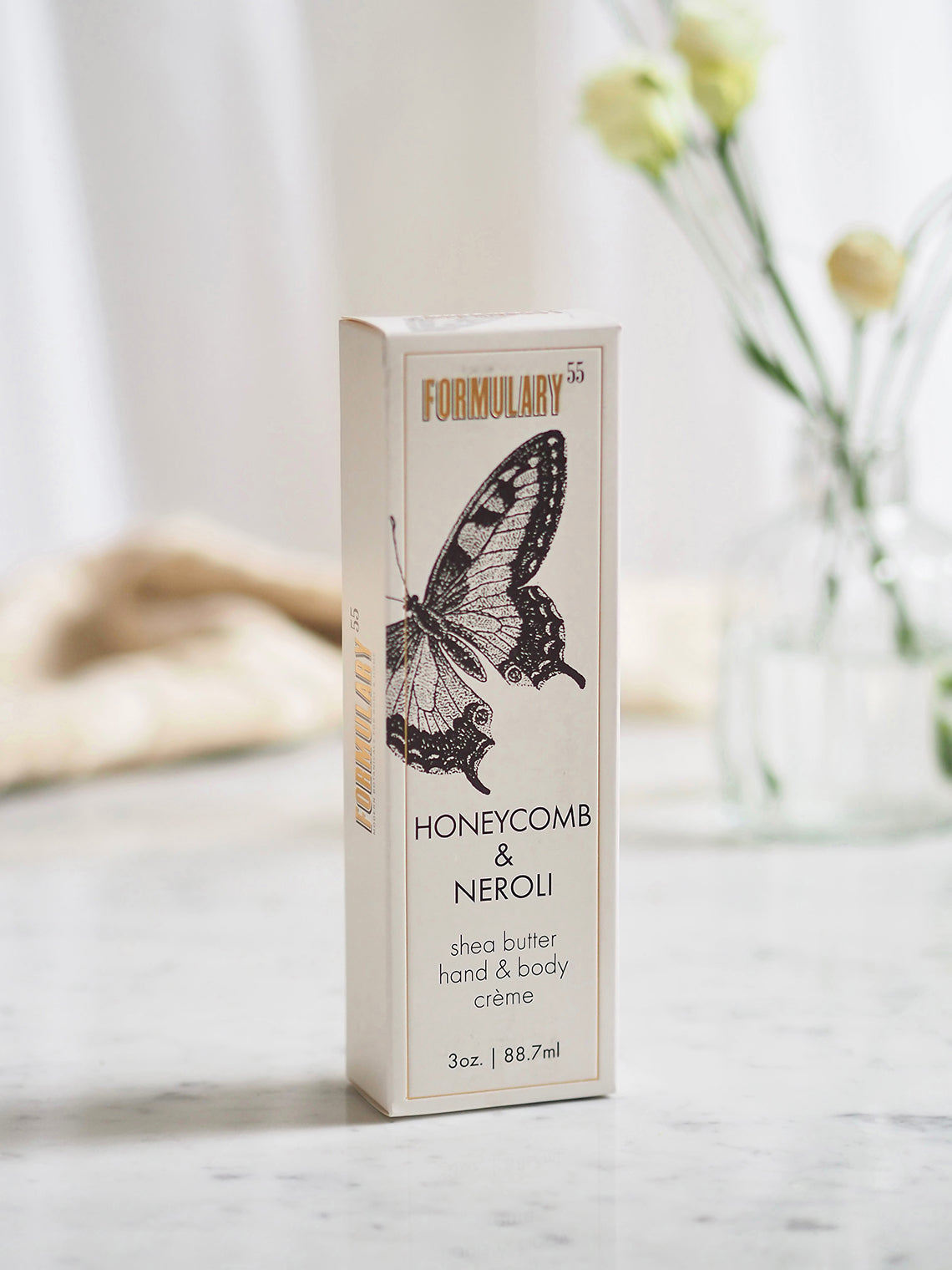 Honeycomb & Neroli is a refreshing and honeyed blend that combines honey's warmth and soothing element with fresh and slightly sweet neroli. This light-weight hand creme contains 5% shea butter. It's perfect for anyone who wants a rich moisturizer without a heavy, greasy feel. Healing aloe and vitamin E help restore softness and elasticity. The essential oils in this hand cream are blended in unique scents ranging from subtle to invigorating.
