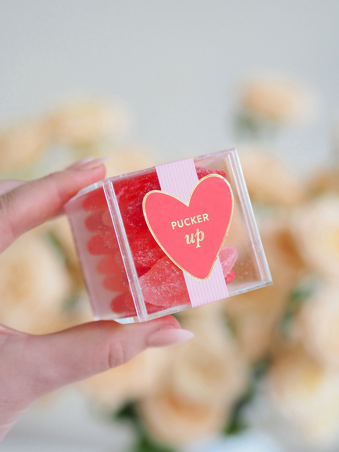 These kissably soft-and-chewy gummy lips in oh-so-smoochable cherry, watermelon & strawberry flavors* are dusted in sweet and sour sugar crystals.