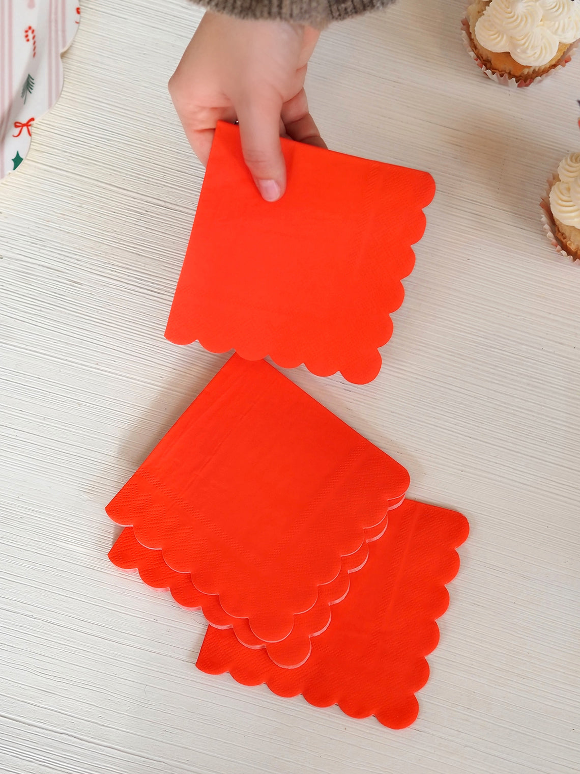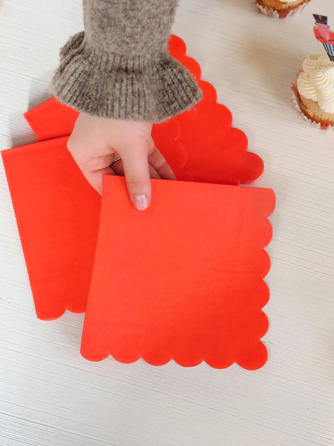 Red is the most striking colour to make your party table pop. It's the colour of love, so it will definitely make your guests feel cherished. These small napkins, with a stunning scalloped edge, are ideal for both practical and decorative use at a cocktail party or any celebration. They are part of our stylish new take on mix and match tableware, and are perfect for use all year round.