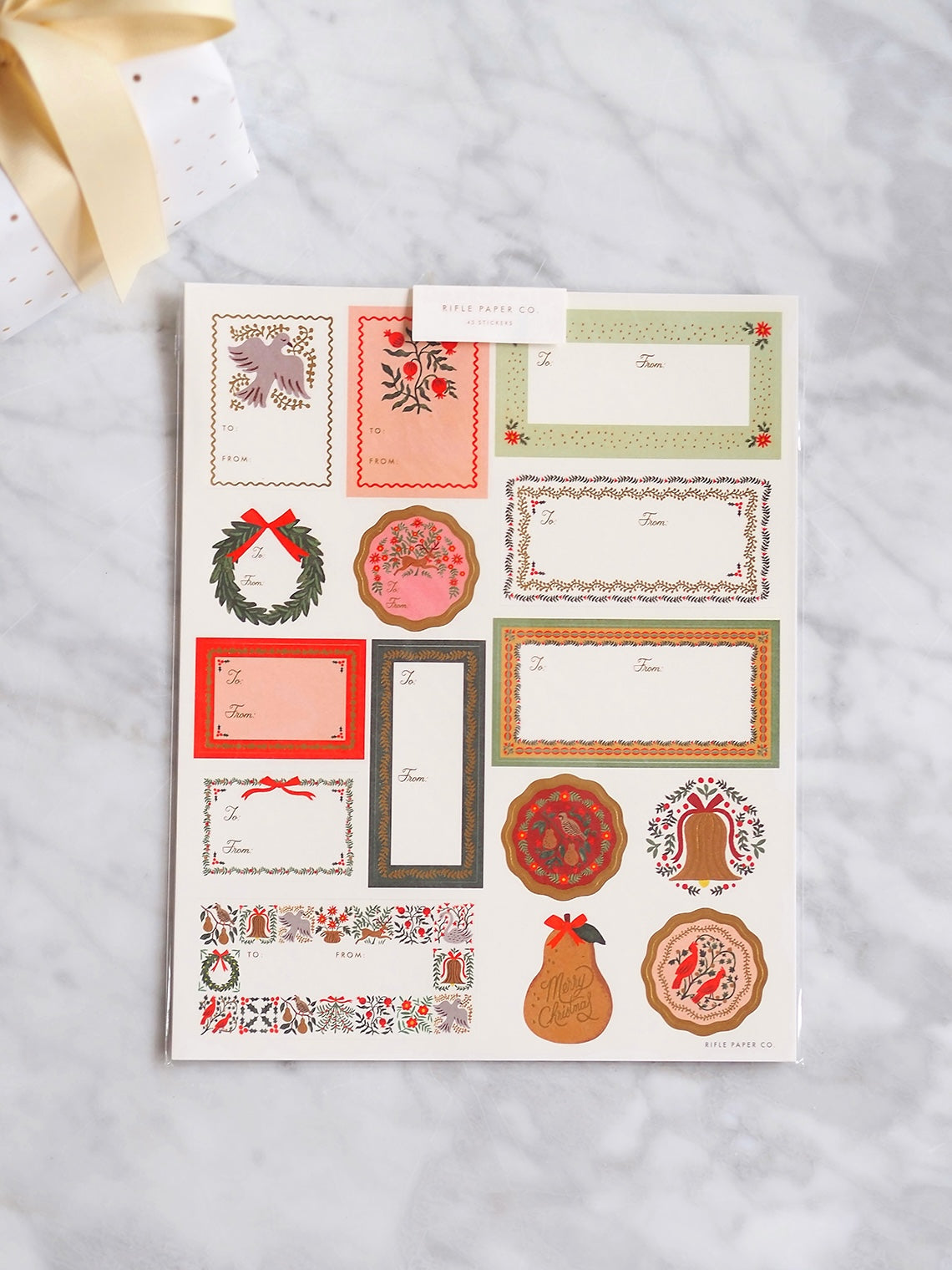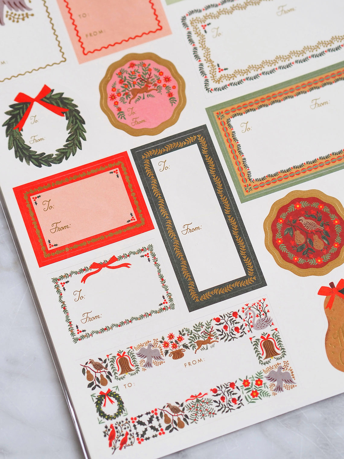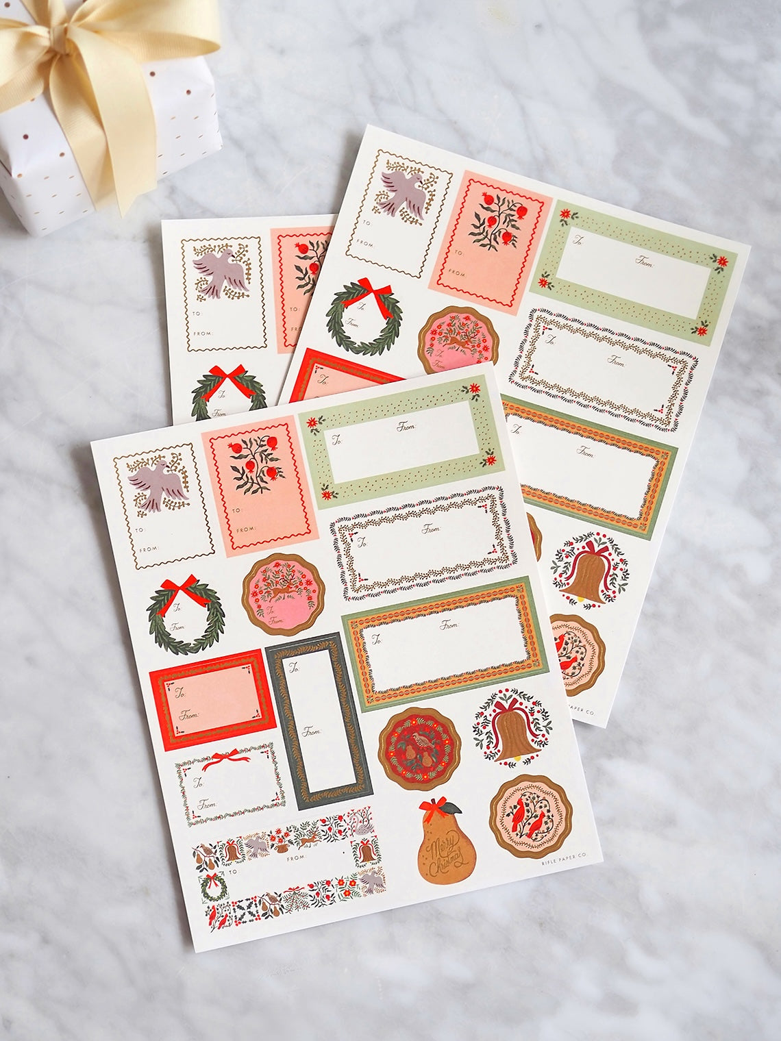 Add a finishing touch to your gifts with gold-accented stickers and labels. Three sheets include a total of 42 illustrated stickers.