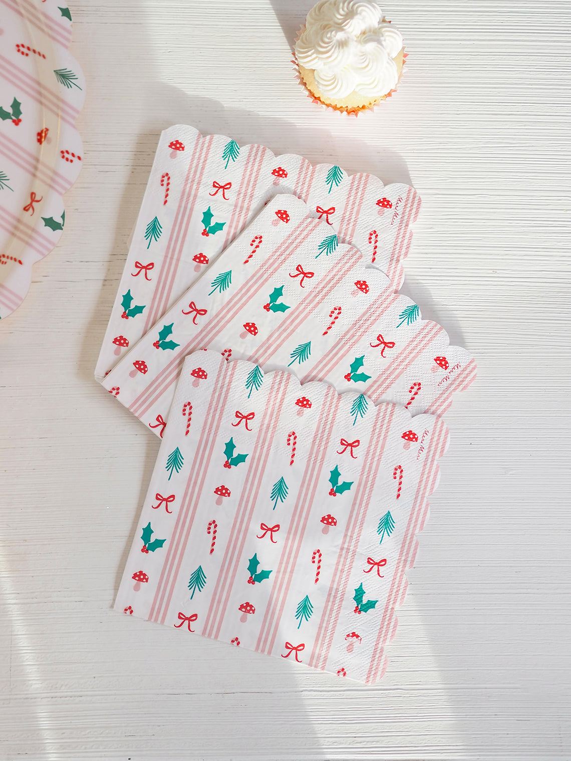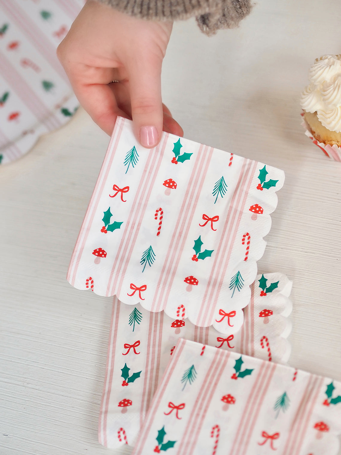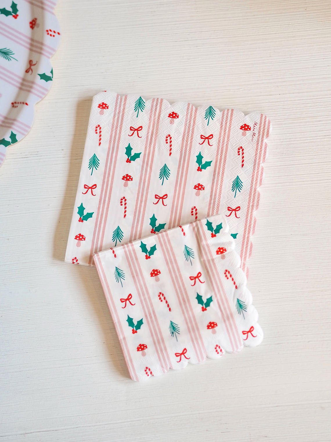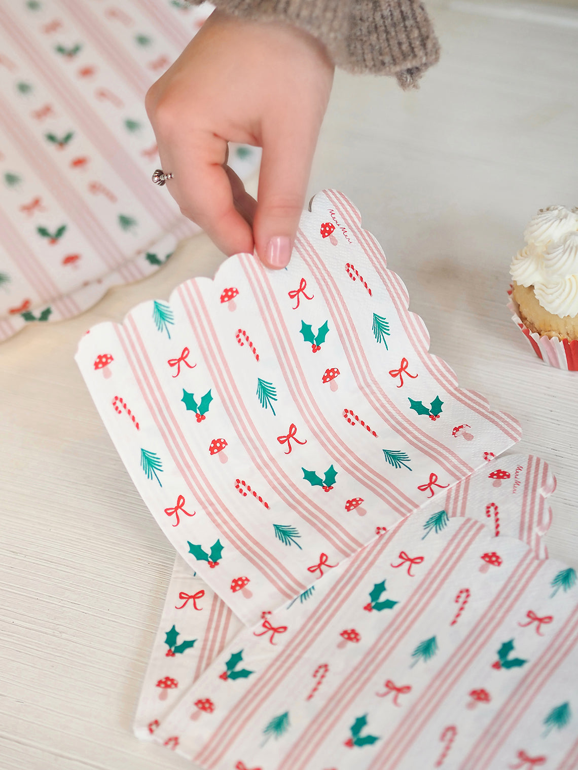 Why settle for just one Christmas motif when you can have a mix of statement icons on your table? Inspired by nostalgic wallpaper patterns, this design blends classic red and green with trend-forward pink stripes for a fresh feel. The bold red scalloped border also adds the perfect vibrant touch of color and style. These paper side plates are ideal to mix and match with your other party essential