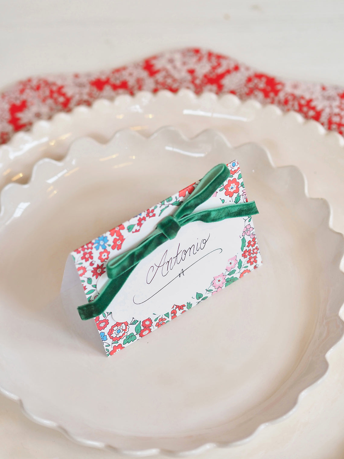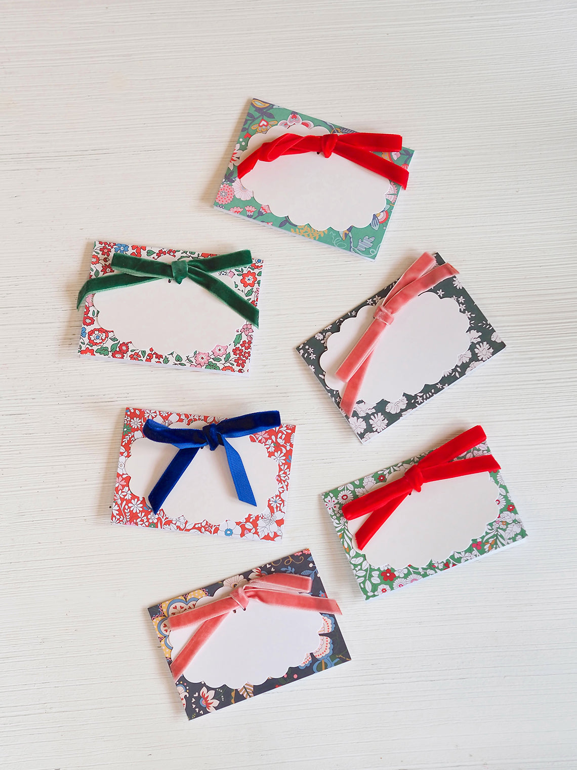 • 6 Paper place cards featuring 6 different Liberty floral prints in joyful festive colors