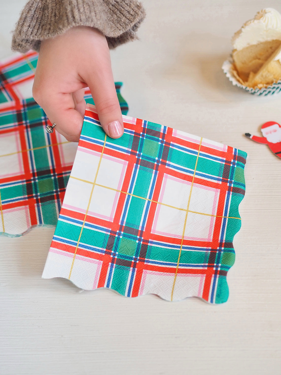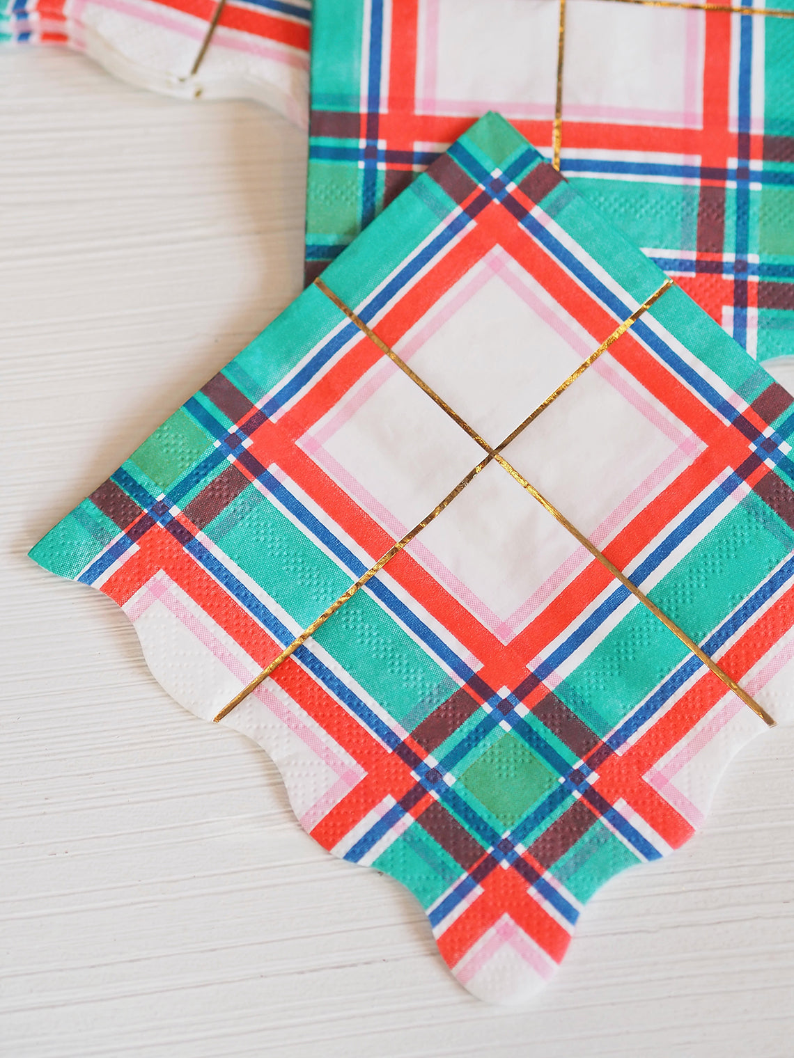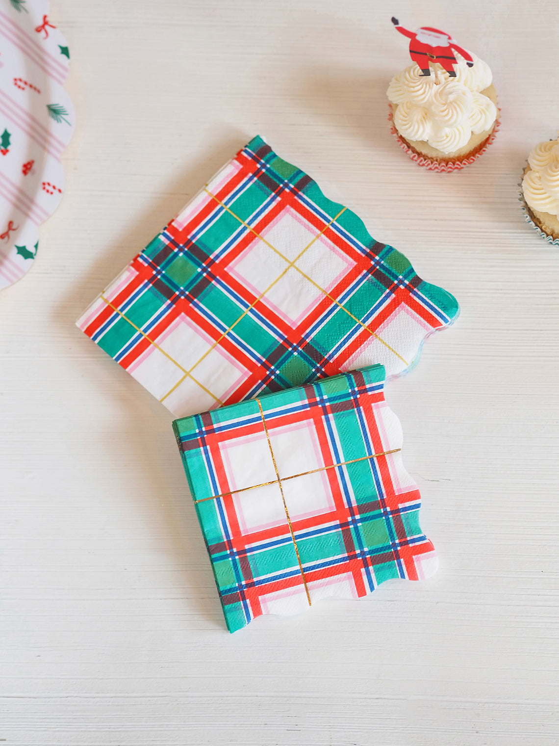 Reminiscent of traditional holiday gatherings and cozy winter lodges, plaid is a timeless design choice for your Christmas celebrations. The mix of festive red, green and white, teamed with stripes of blue and shiny gold, gives a modern makeover to this classic print. Our plaid small paper napkins are perfect for creating a warm, nostalgic feel at your party table.