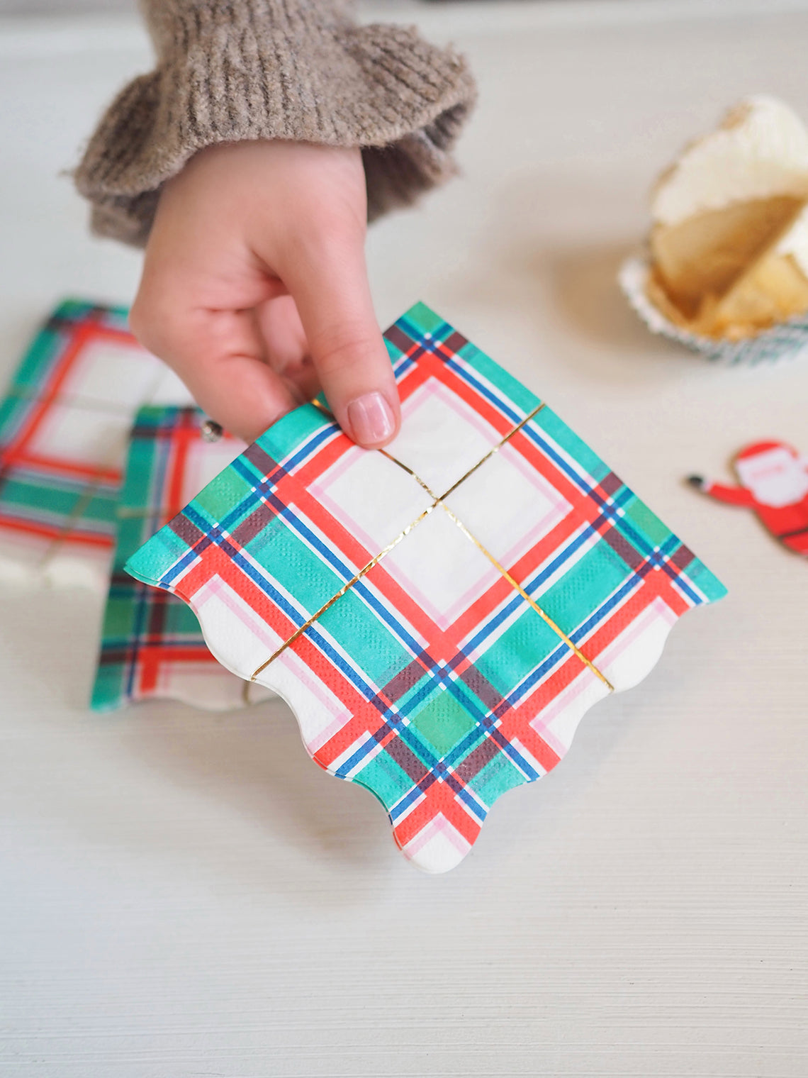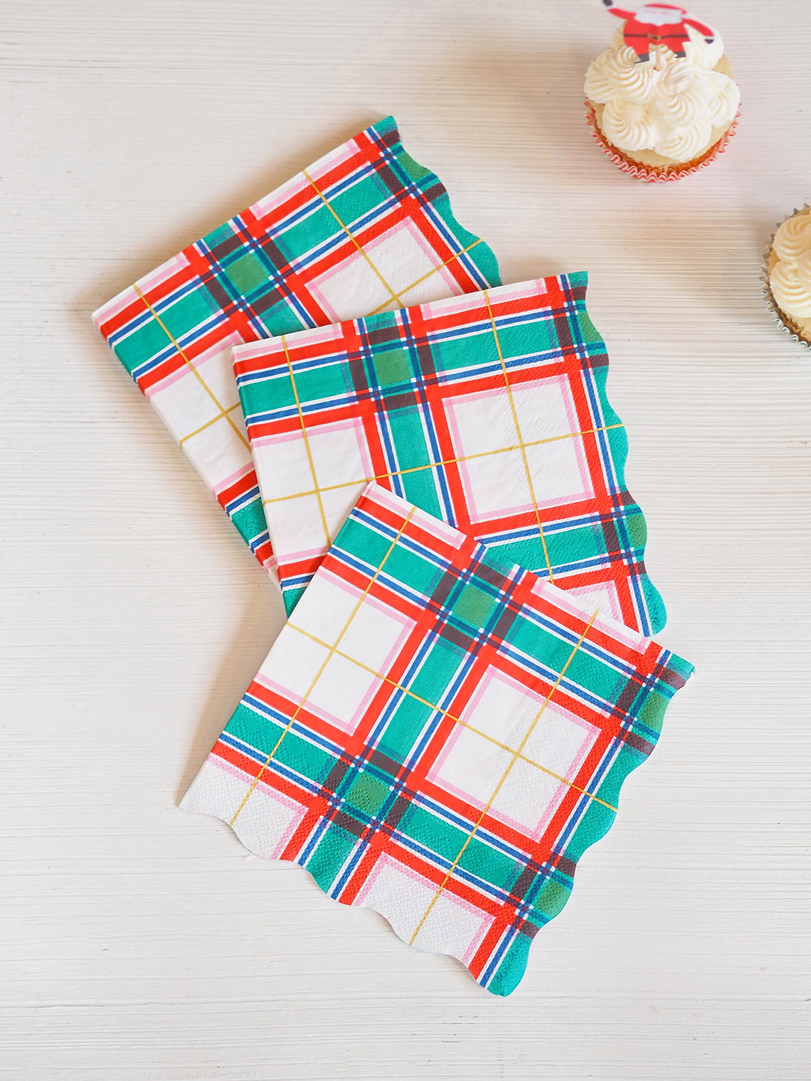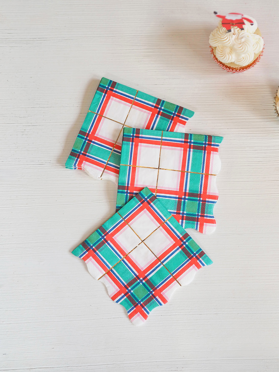 Reminiscent of traditional holiday gatherings and cozy winter lodges, plaid is a timeless design choice for your Christmas celebrations. The mix of festive red, green and white, teamed with stripes of blue and shiny gold, gives a modern makeover to this classic print. Our plaid small paper napkins are perfect for creating a warm, nostalgic feel at your party table.