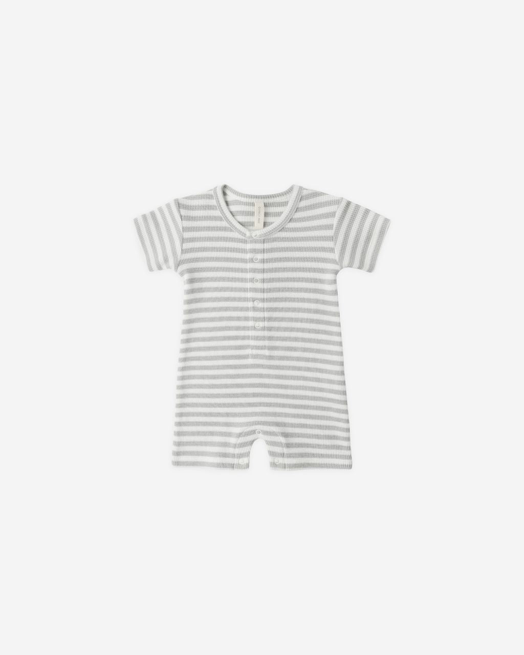 Sage Stripe Snap Romper is a sweet and easy warm-weather wardrobe go-to. Designed with front and bottom snaps for easy changes.