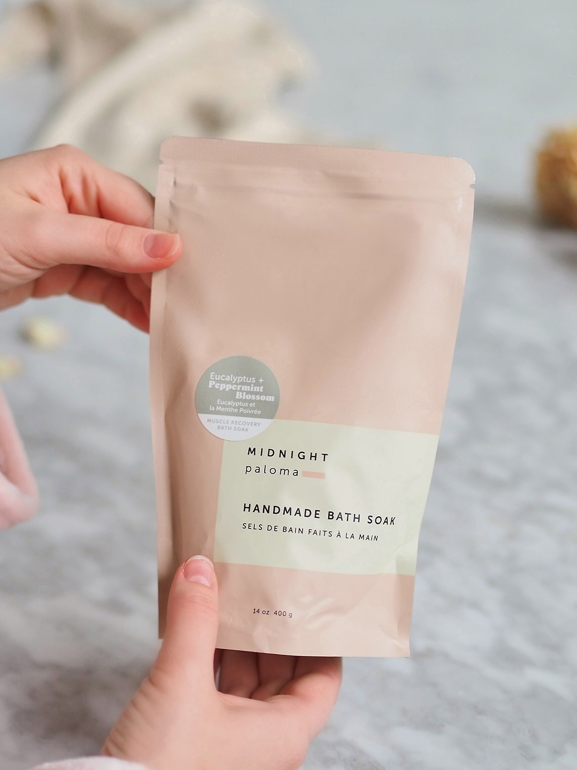 Stiff, sore muscles? No time for a massage? The Eucalyptus + Peppermint Blossom bath soak is exactly what your tense, tired body needs. Add 2 tablespoons to your bath, then slowly inhale the invigorating steam, exhale, and relax.