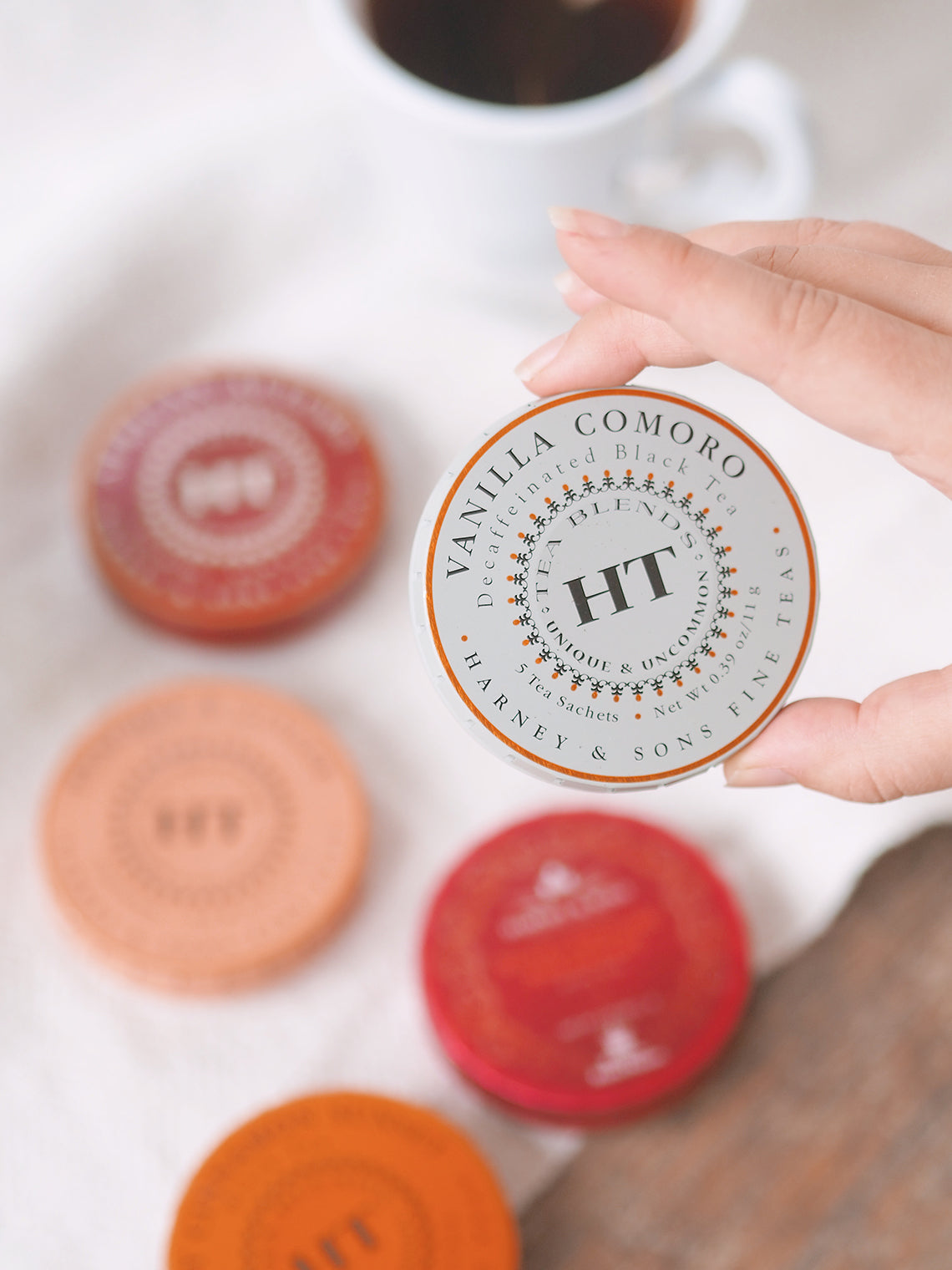 Vanilla Comora: Decaf black tea with vanilla flavour. All natural.