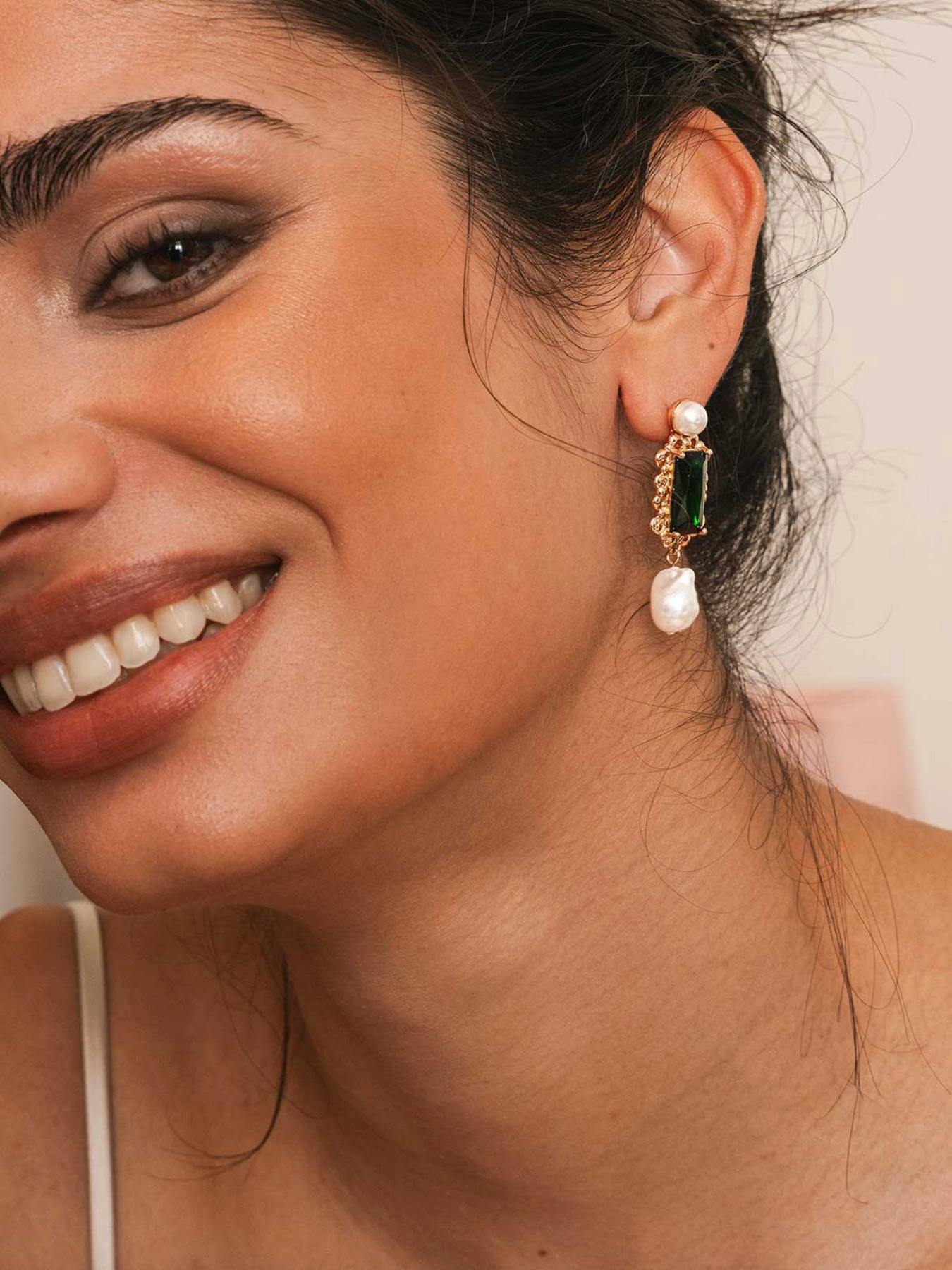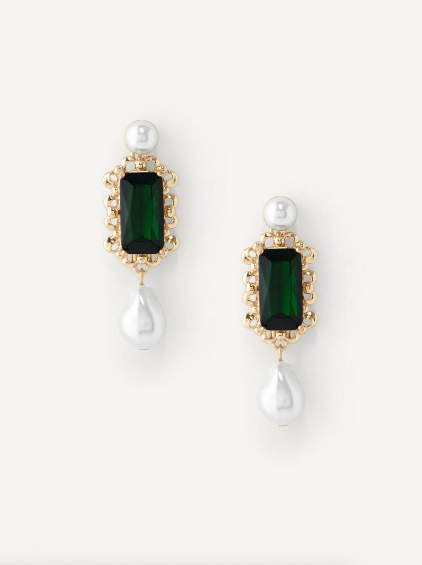 With rich emerald glass and soft pearl details, the Vittoria Drops strike the perfect balance between drama and grace. Whether styled with sleek hair or loose waves, they promise to turn heads at every celebration.